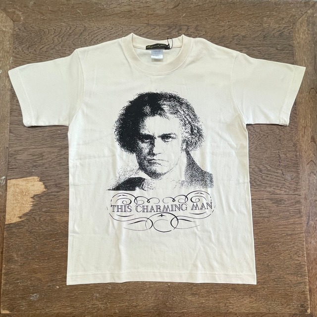 ヴィンテージプリント定番のベートーヴェン。 映画 CLOCKWORK ORANGE で主人公Alexの部屋に飾ってあるベートーヴェンと同じ肖像画。 THE Smithsの名曲THIS CHARMING MANをAlexに見立ててイメージしたデザイン。 背面の裾付近に、スタンププリント&ハンドペイント。 6.2ozのヘビー天竺。 身幅 着丈 肩幅 袖丈 S : 47 63 42 18 M : 52 68 46 21 L : 55 72 50 22 XL : 60 75 55 23
