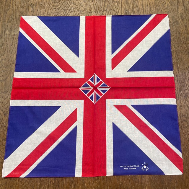 大胆にプリントされたユニオンジャックがキャッチーなコットンバンダナ。 ポケットからチラ見せさせたり、首に巻いたり…お弁当を包むのにもちょうど良いサイズの万能アイテム。 53cm×53cm 素材 Cotton 100%