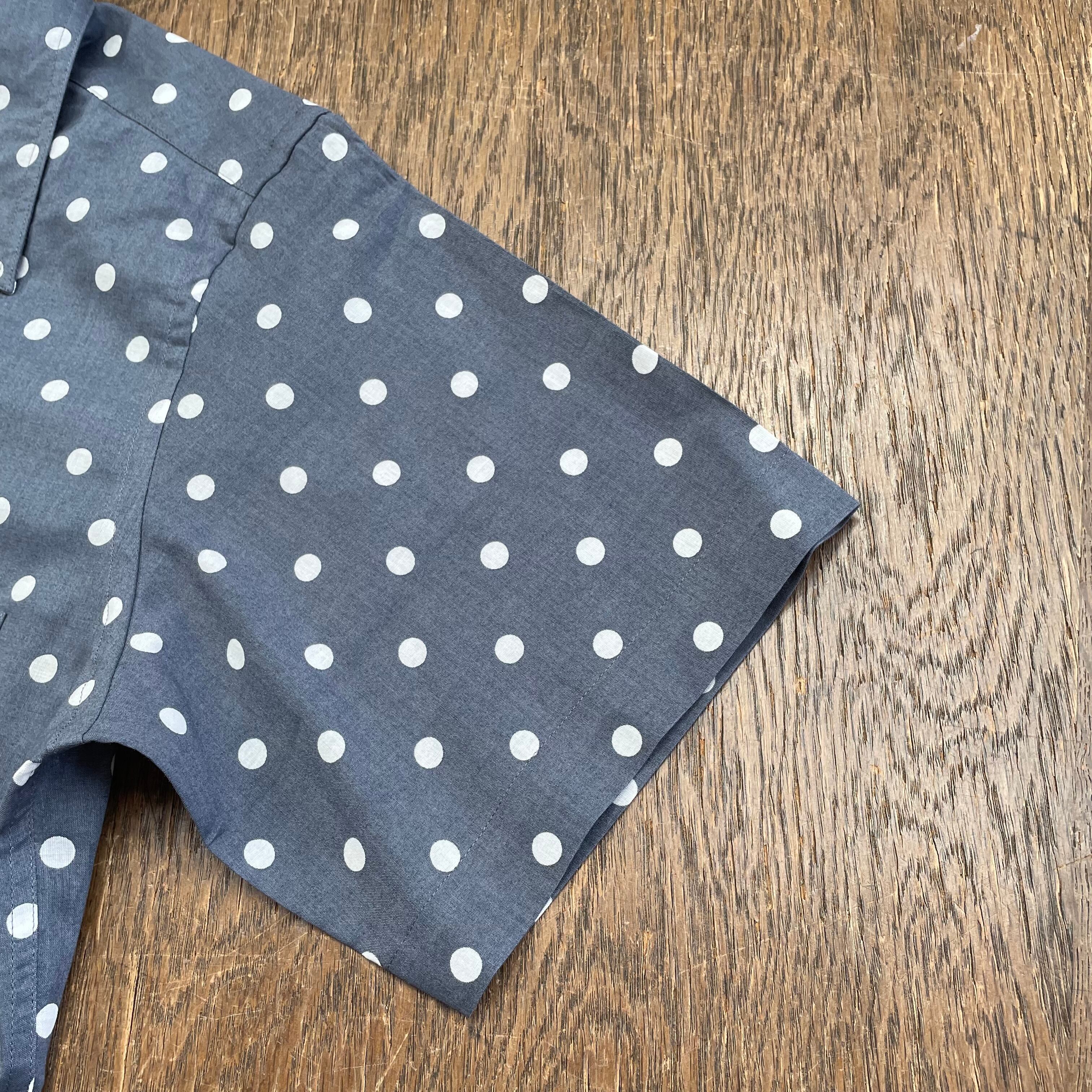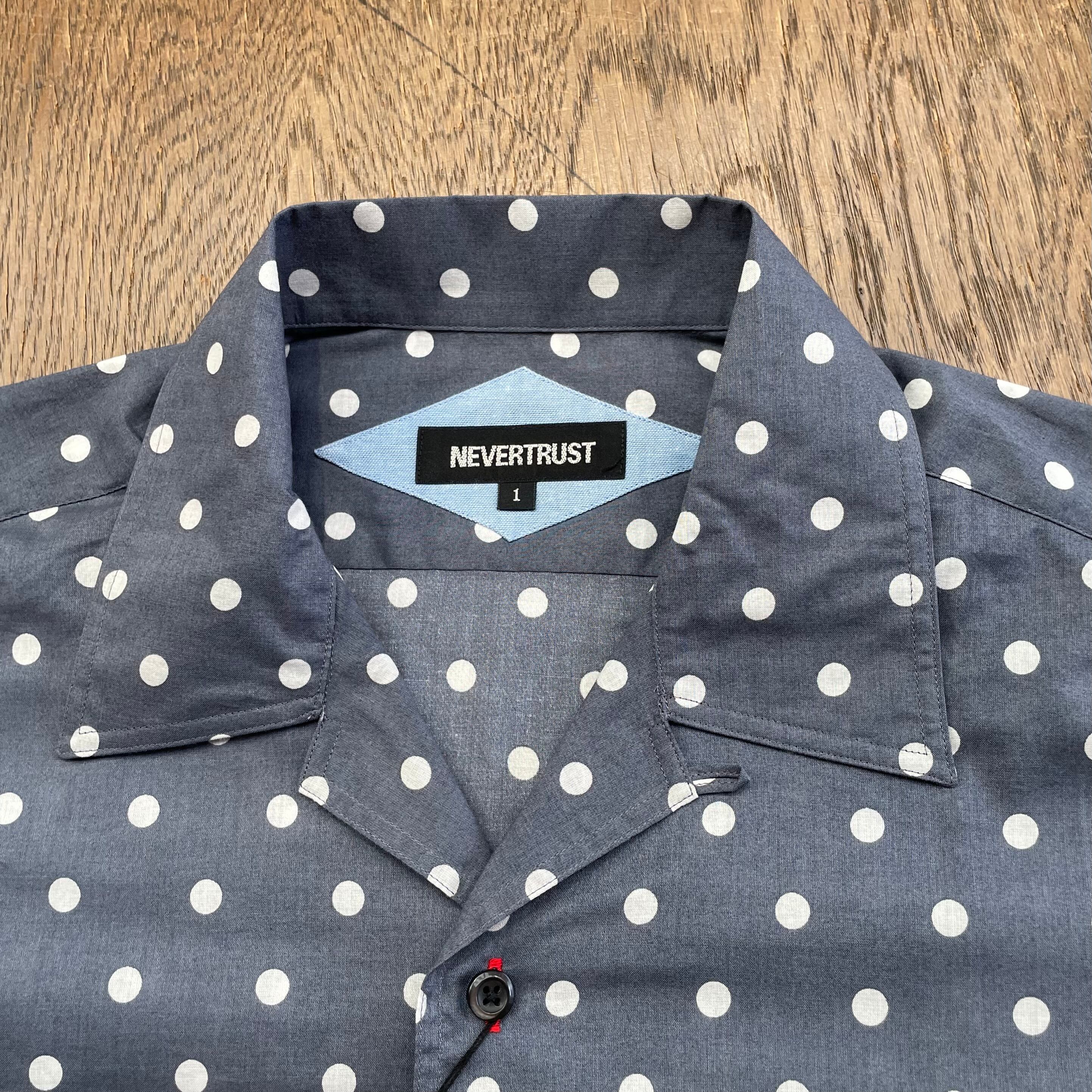 never trust ドット柄 ワンナップカラー(オープン)半袖シャツ Navy Gray