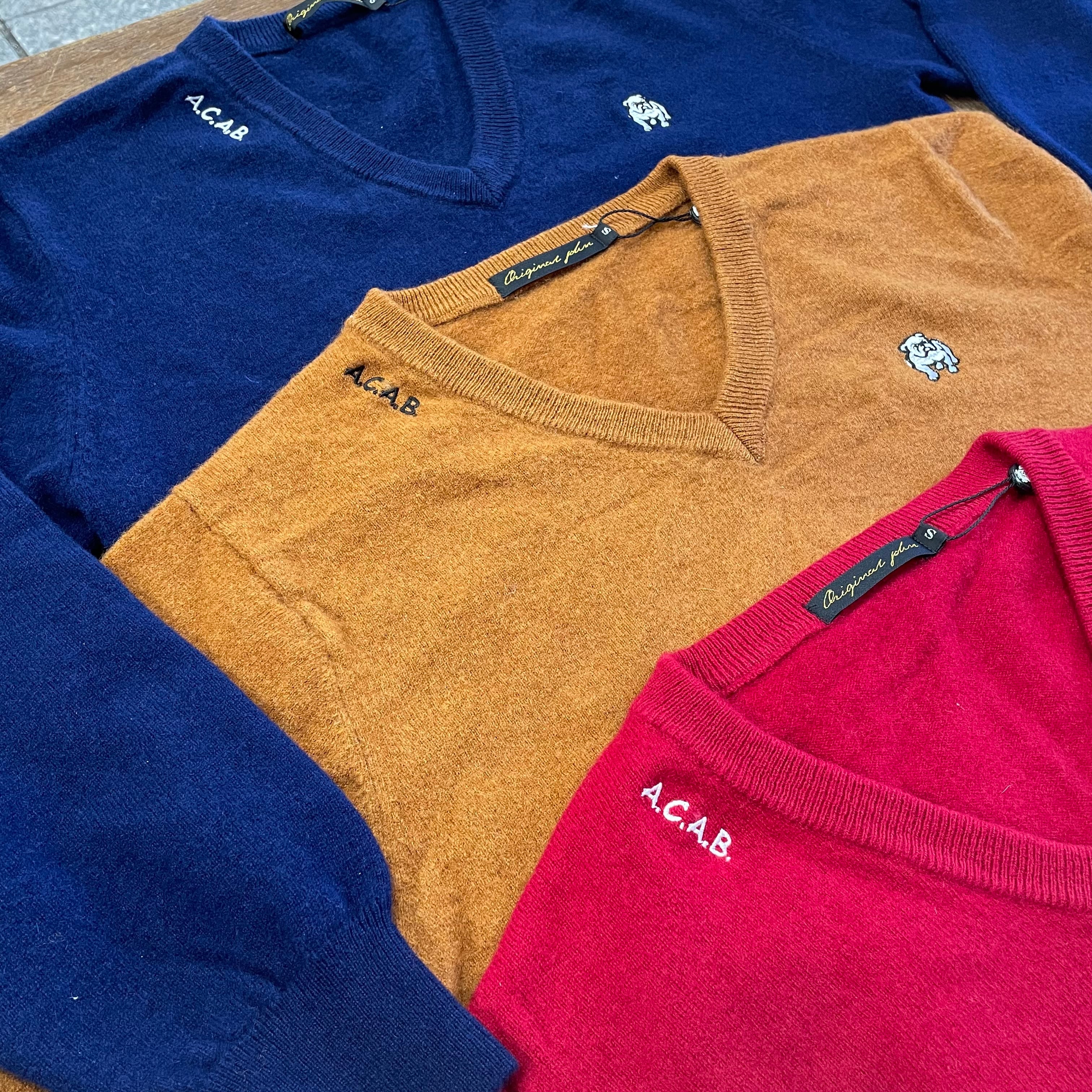 シンプルなデザインで、首横に「A.C.A.B」刺繍、胸にブルドッグ刺繍。