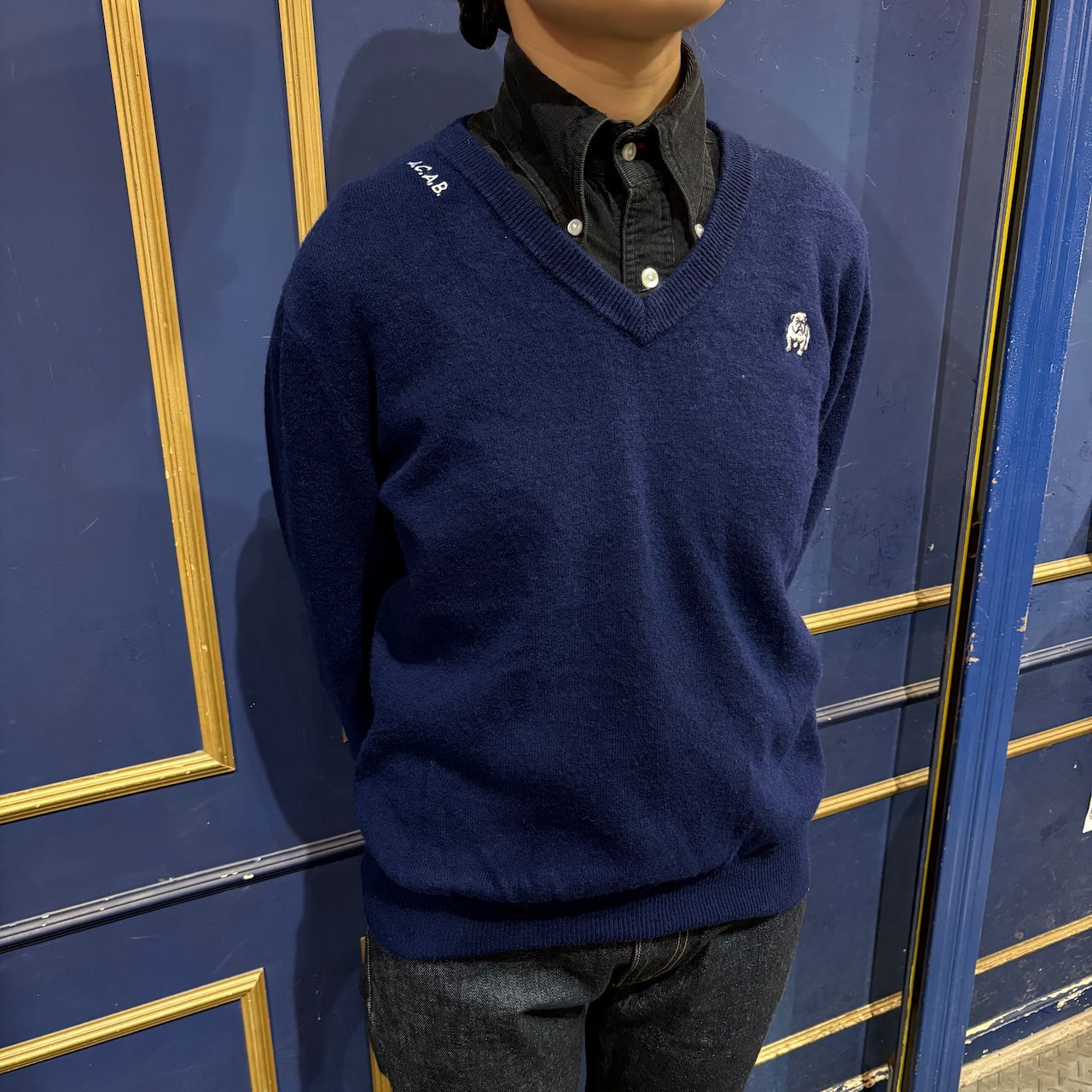 洗濯可能なウォッシャブル・ウールのVネックセーター。