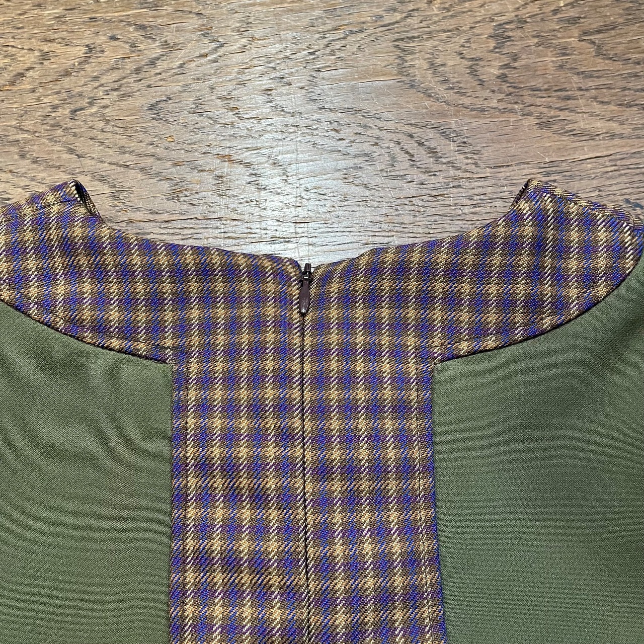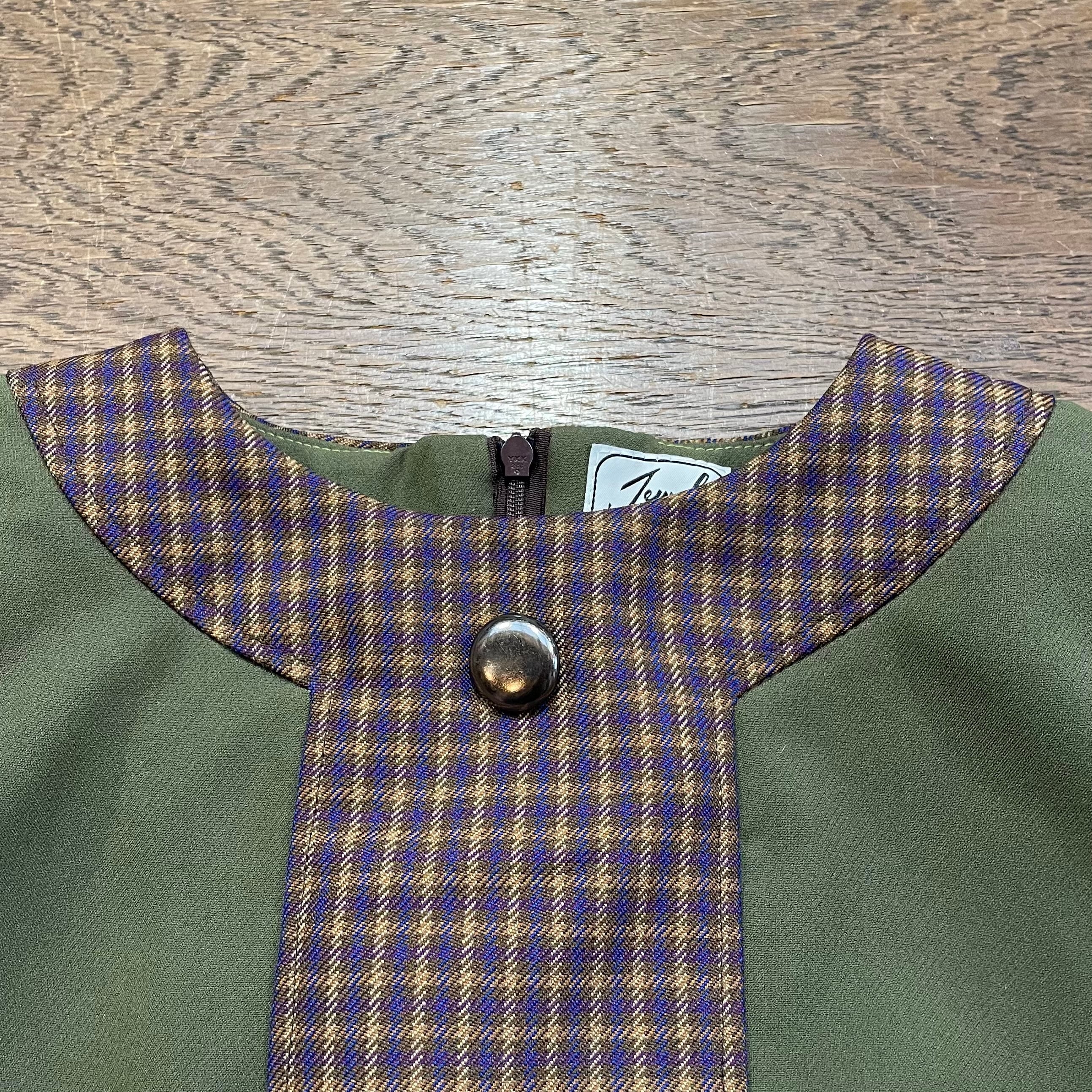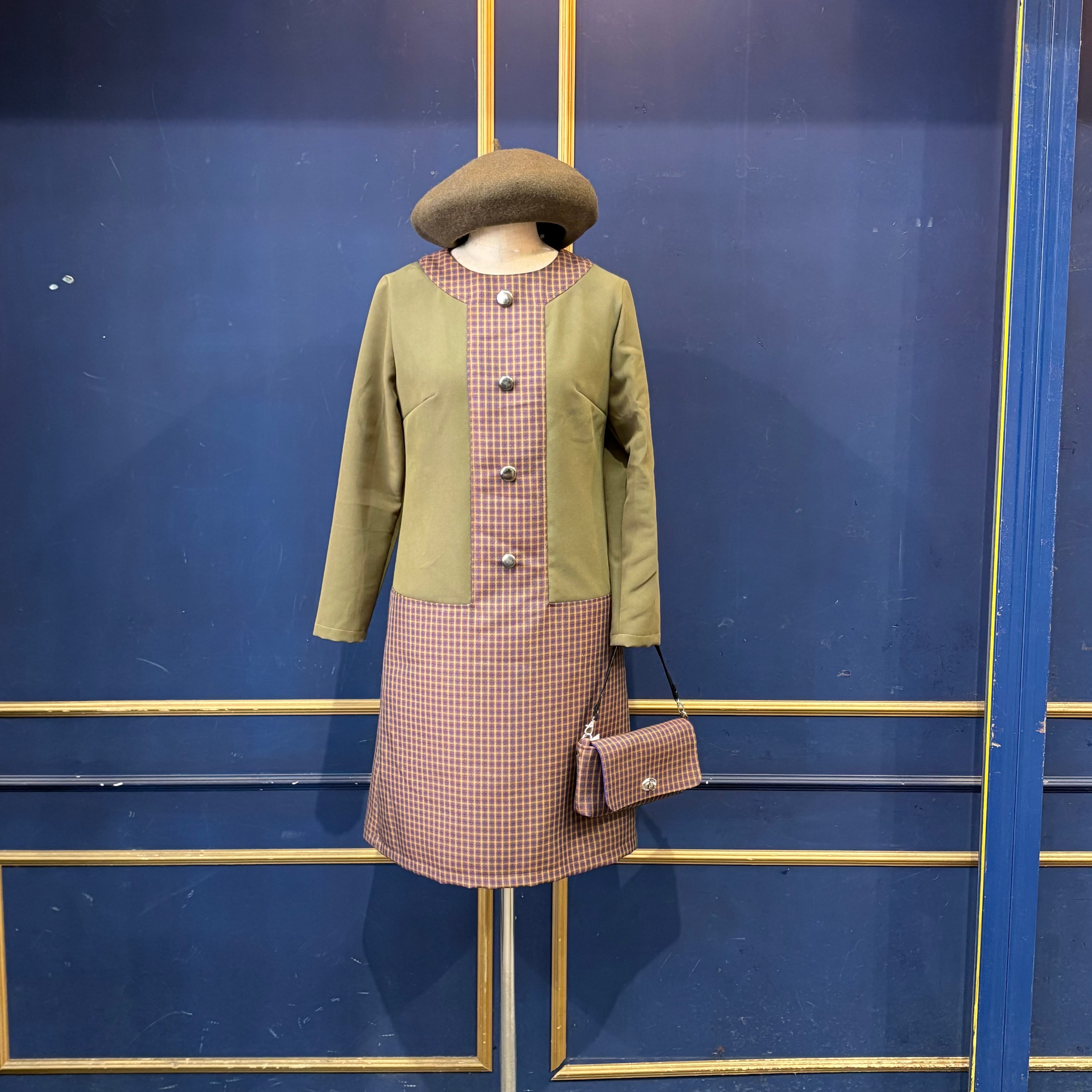 jewel trash×fab chic ワンピース オリーブグリーン×ブラウンチェック
