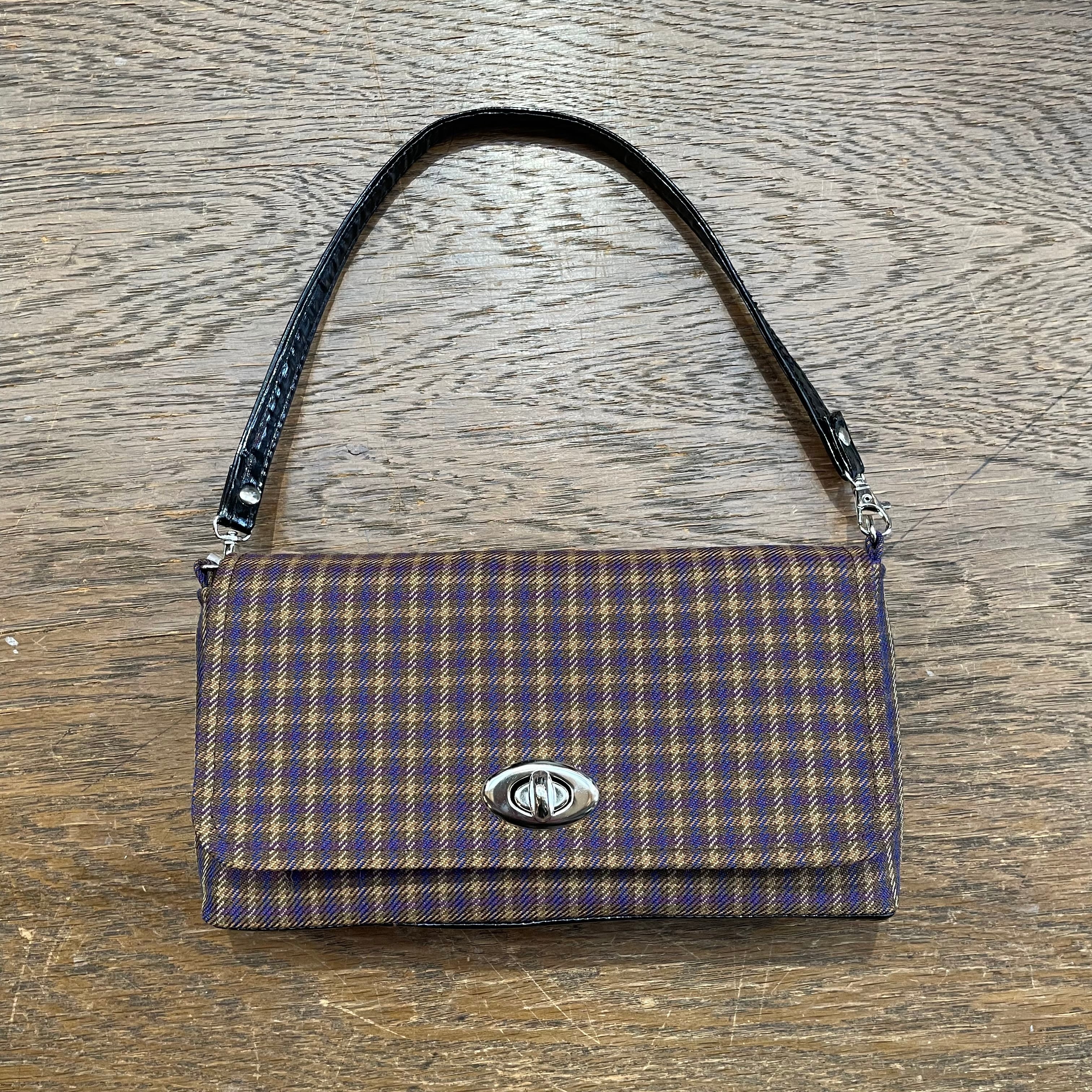 デザイナー渾身のハンドメイド、ターンロックで開閉するレトロなハンドバッグです。