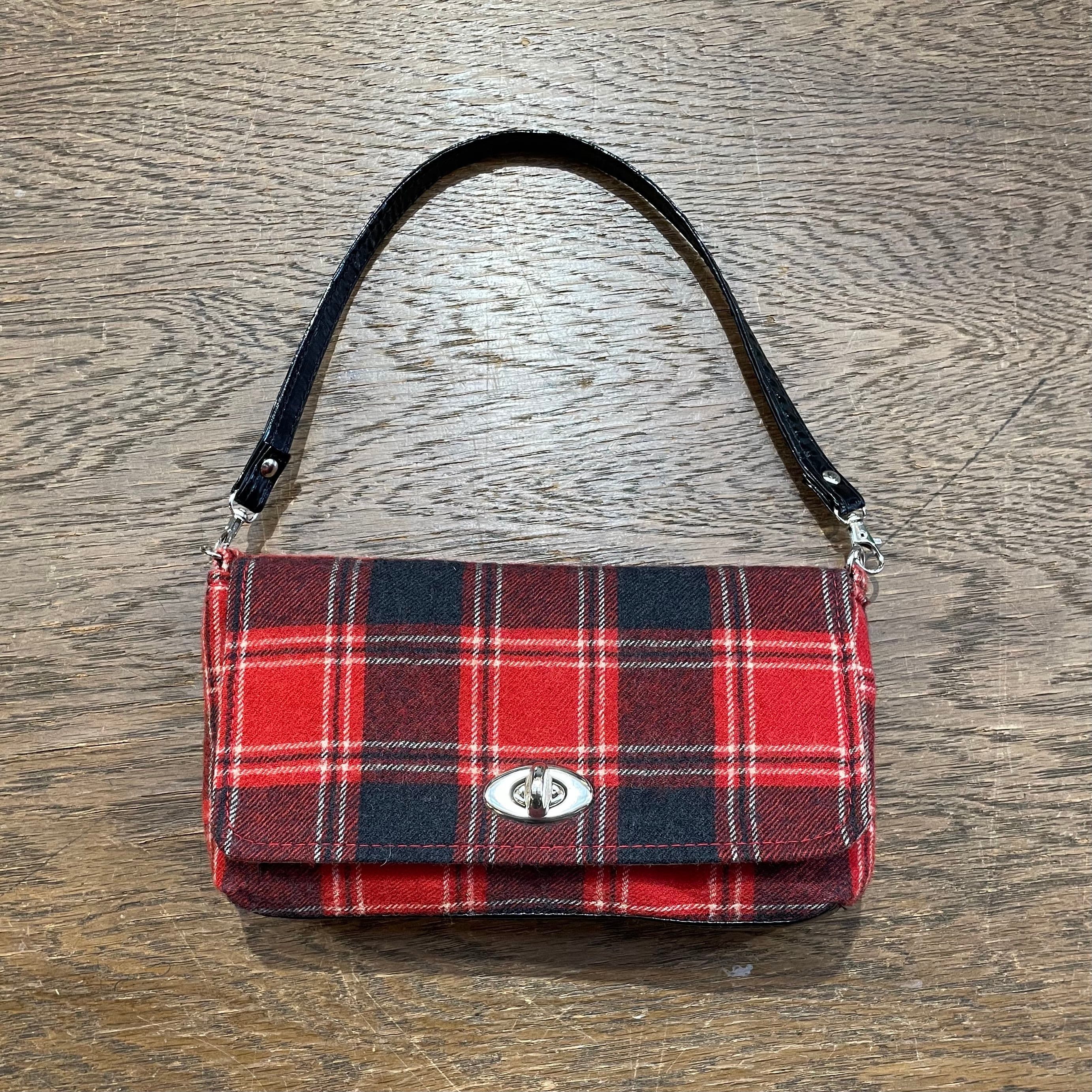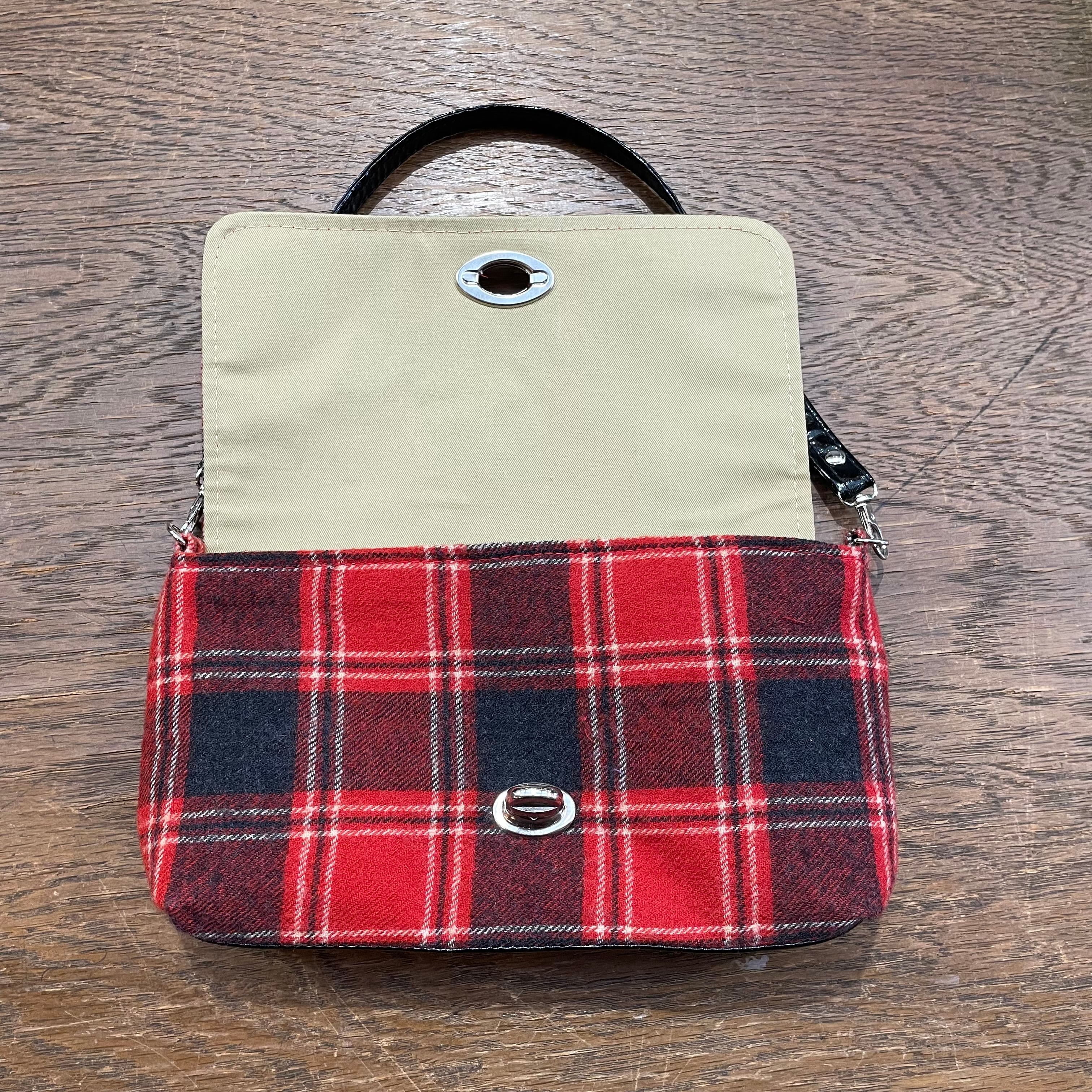 デザイナー渾身のハンドメイド、ターンロックで開閉するレトロなハンドバッグです。