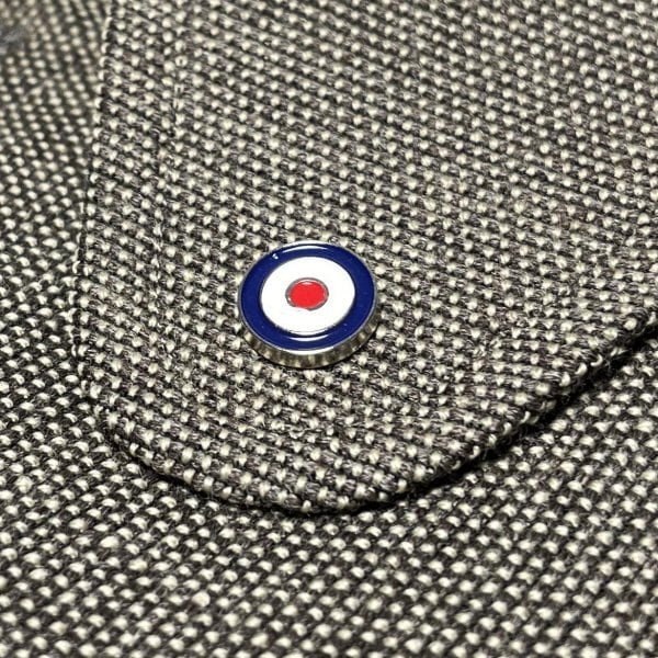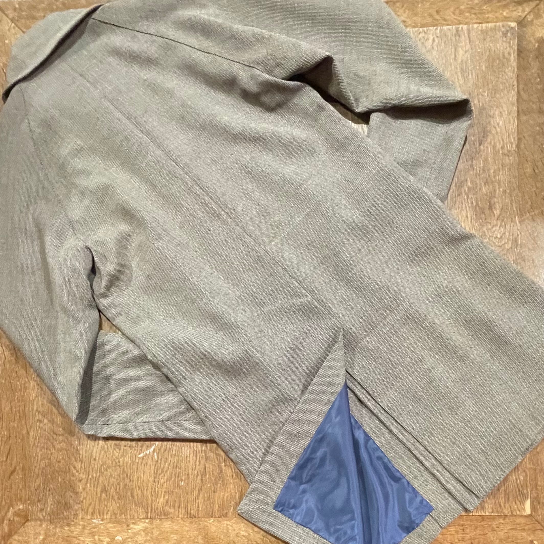 ヴィンテージを彷彿させる裏地の配色、ヴィンテージ加工のボタン、深めのセンターベント、内ポケット有り。