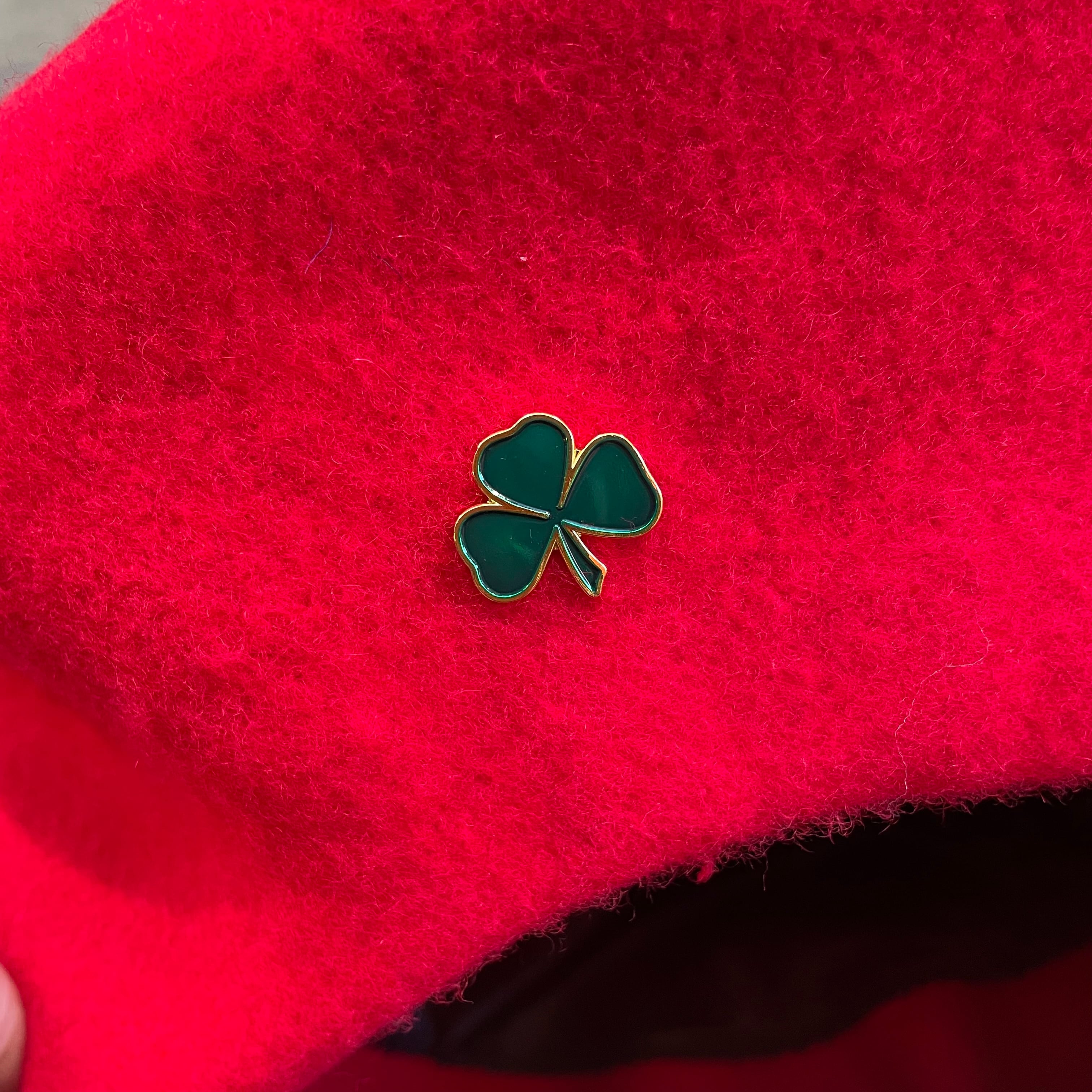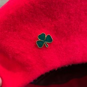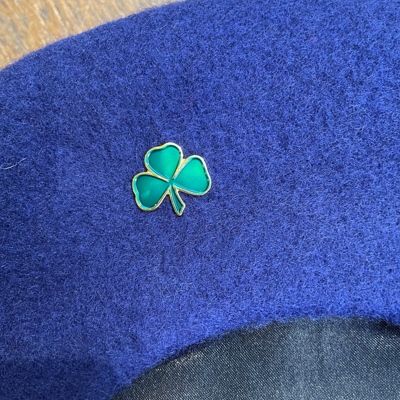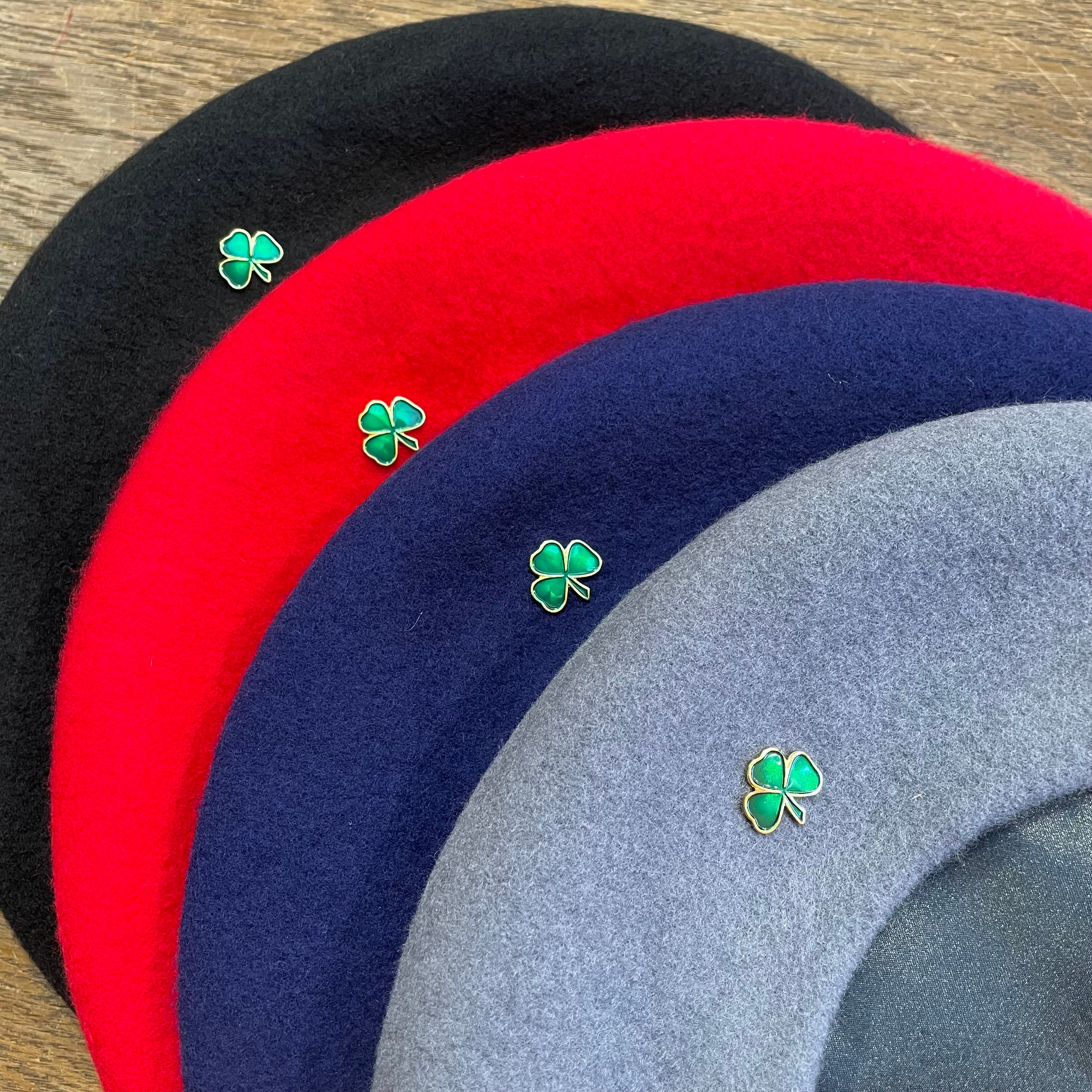 三つ葉のクローバー(シャムロック)のピンズ付き、ウール素材のビッグベレー。