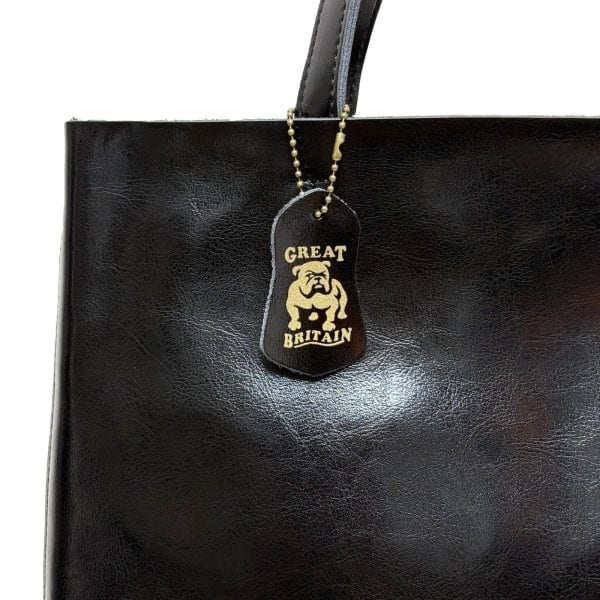 "ブルドッグ"プリントのレザータブ付き