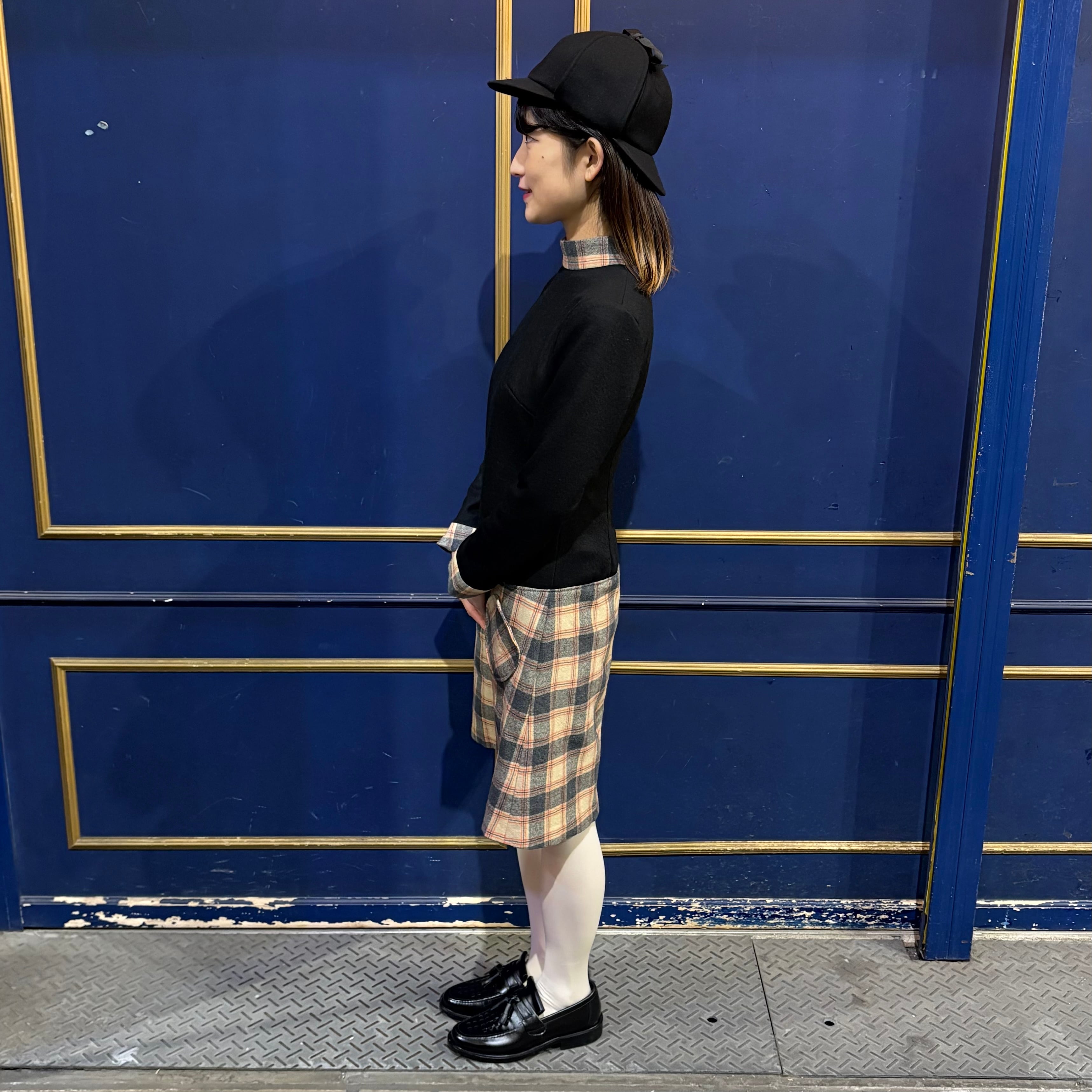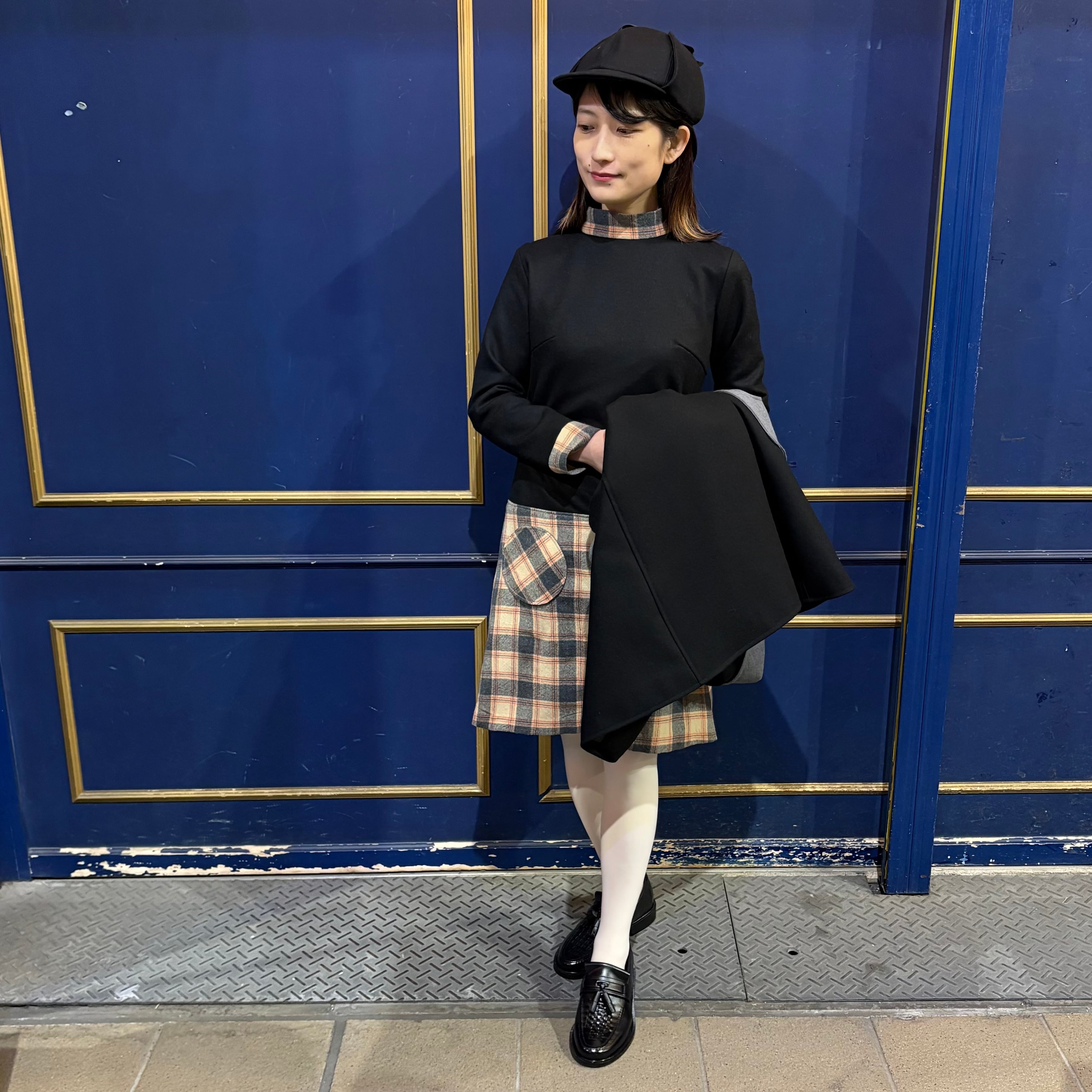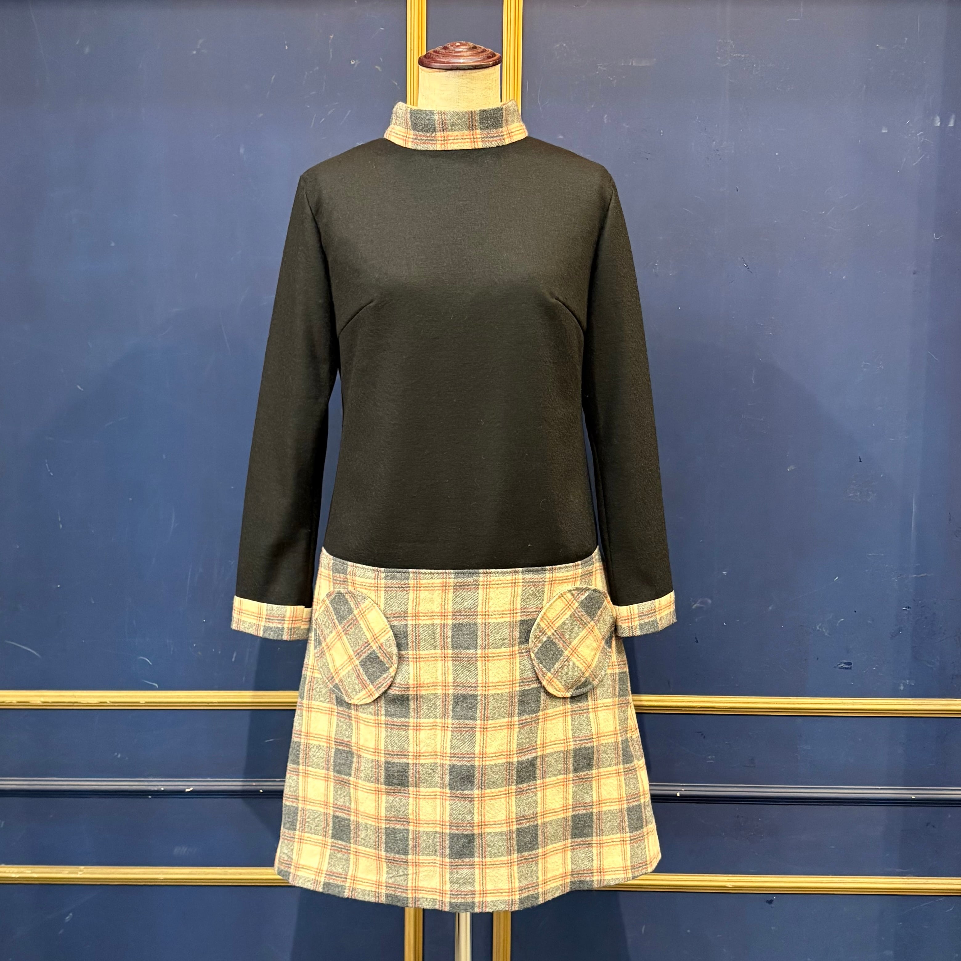 jewel trash×fab chic ワンピース ブラック×ベージュチェック
