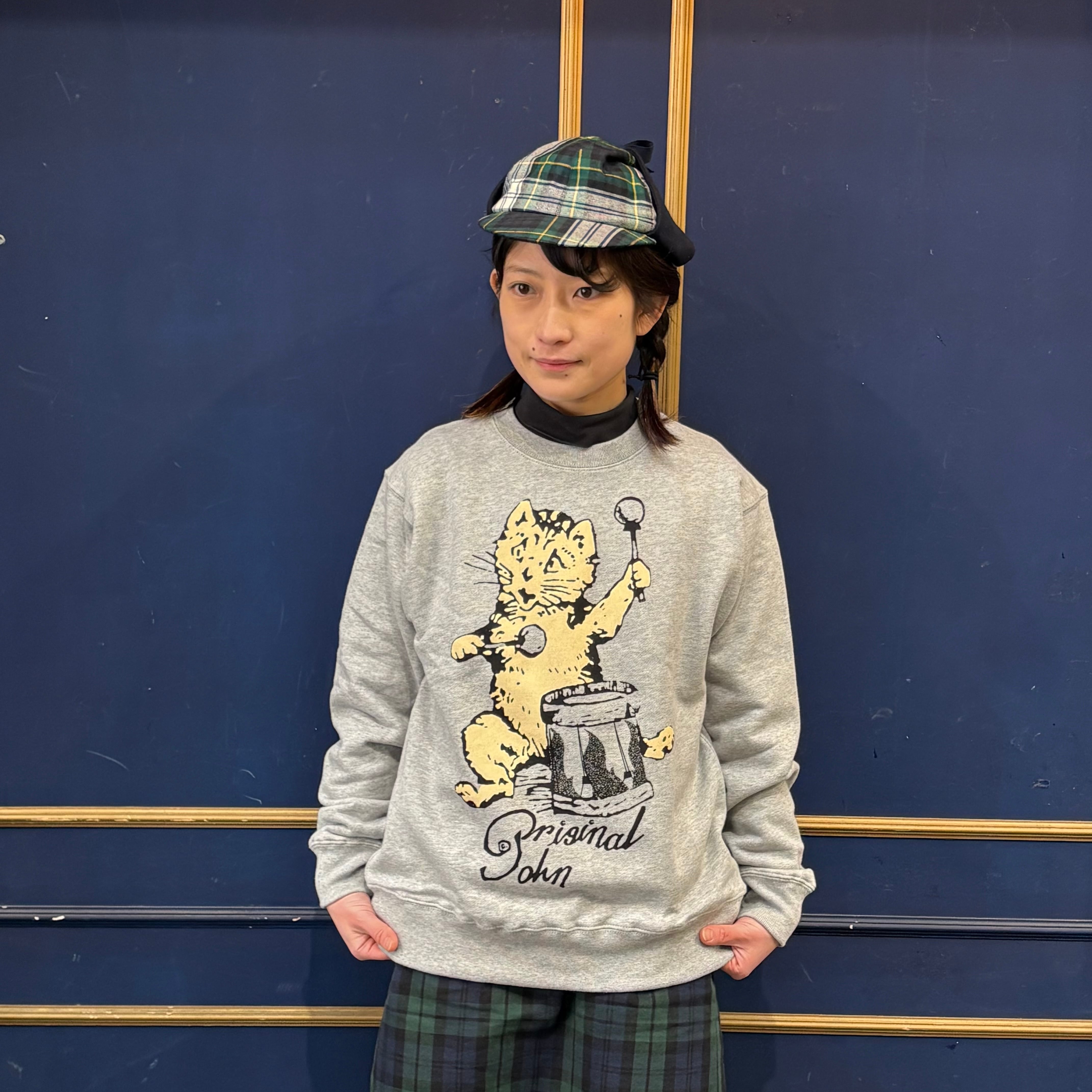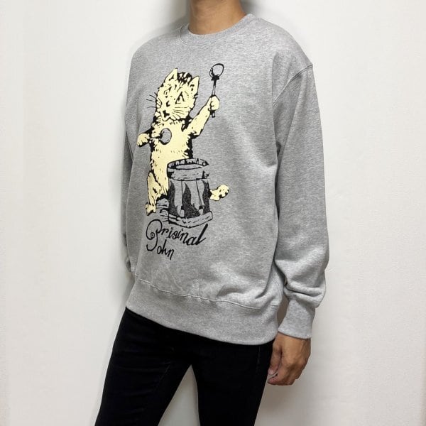 original john DRUMMING KITTEN HEAVY SWEAT SHIRTS HEATHER GREY