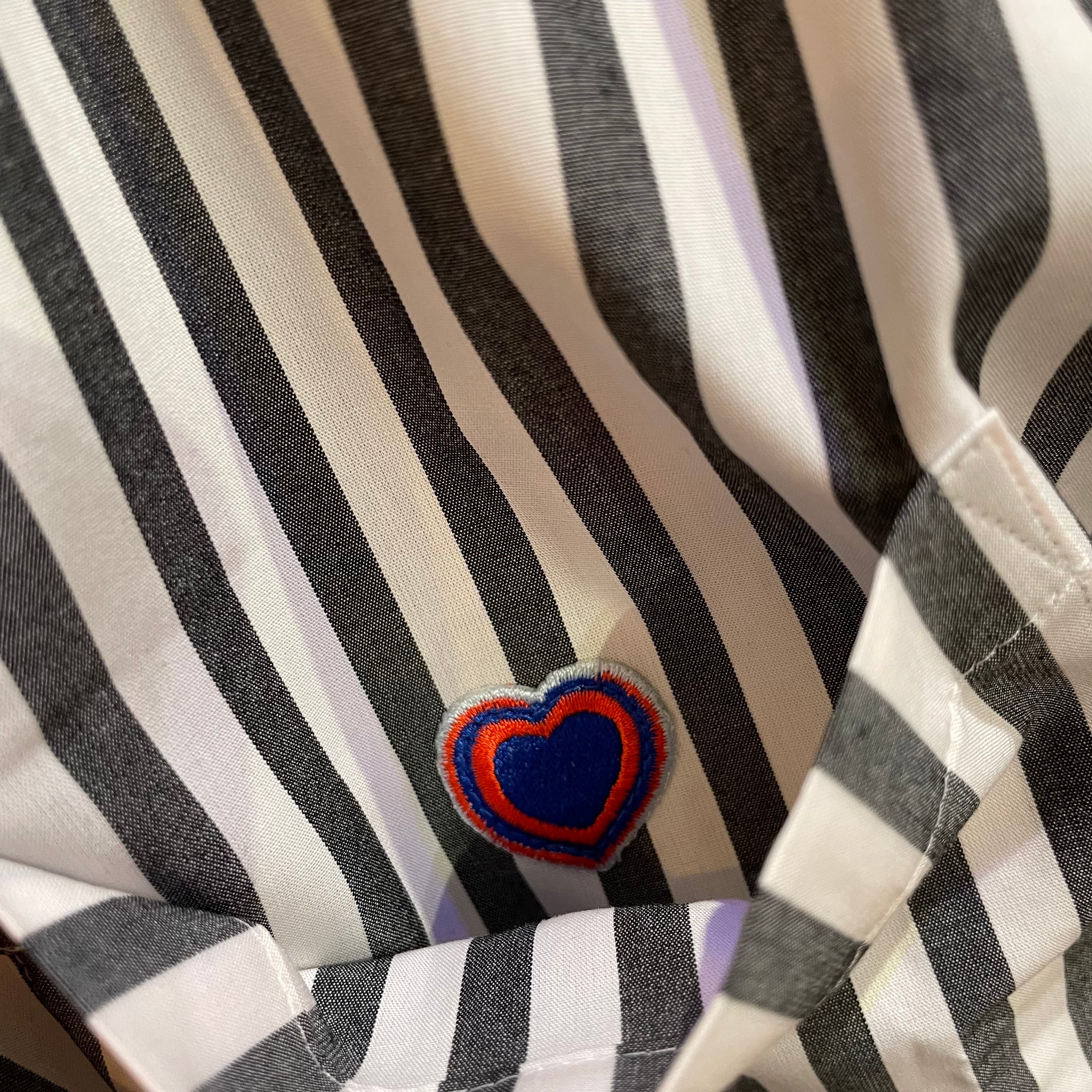 胸ポケットの中にハートマークの隠し刺繍ワッペン。