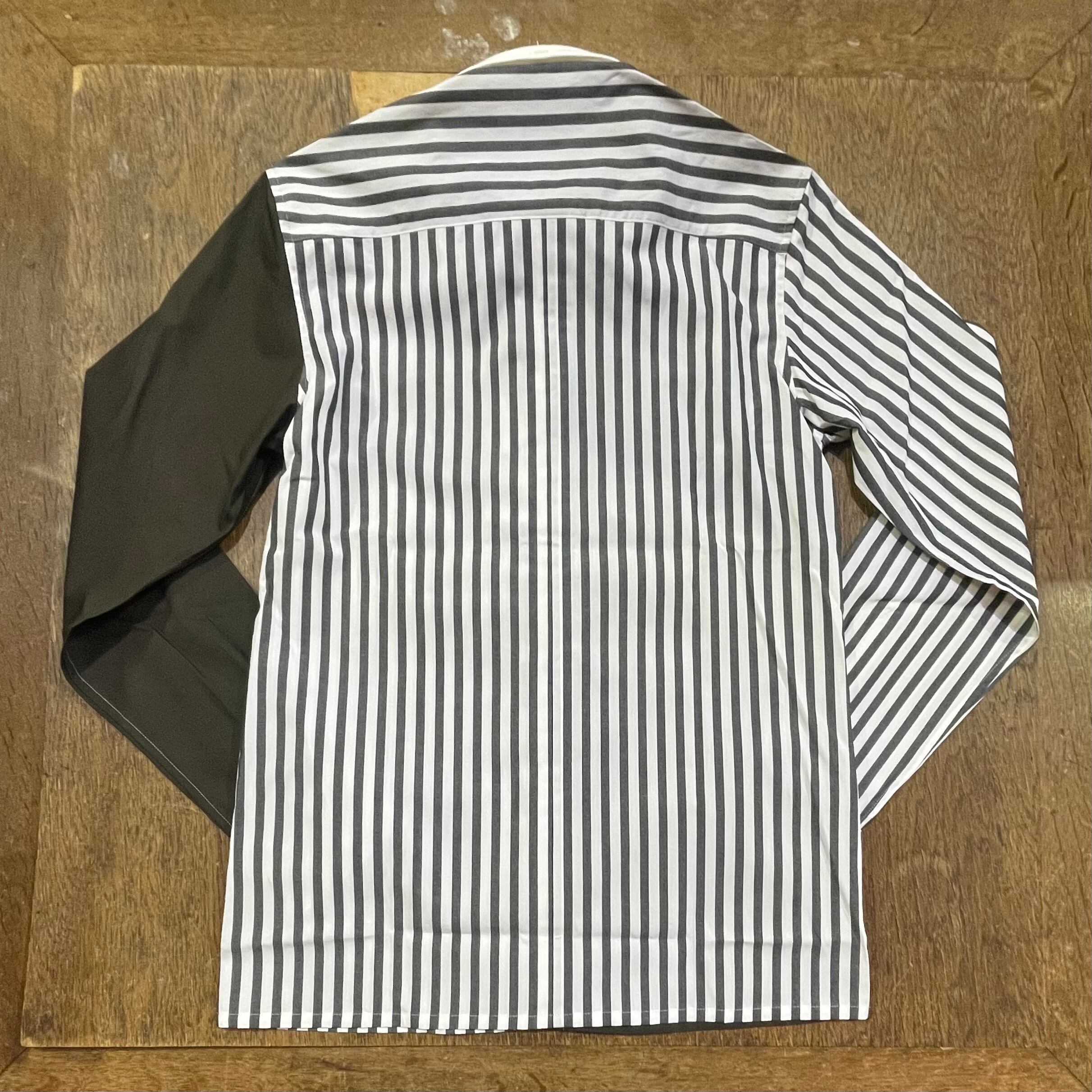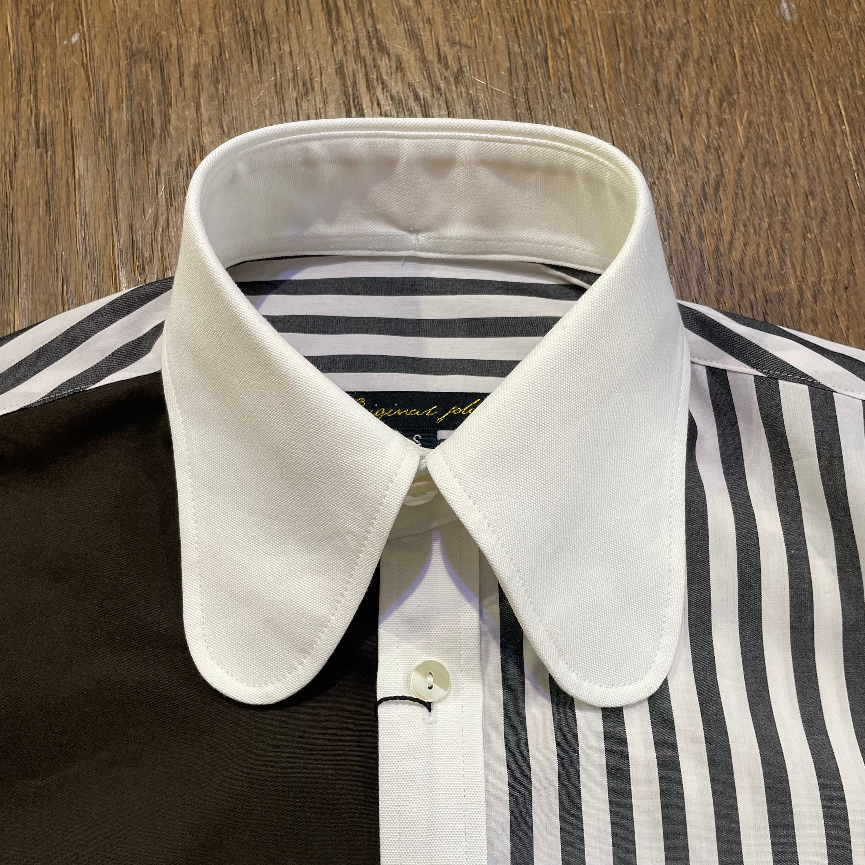 3種の生地を使ったクレイジーパターンのビーグルシャツ。