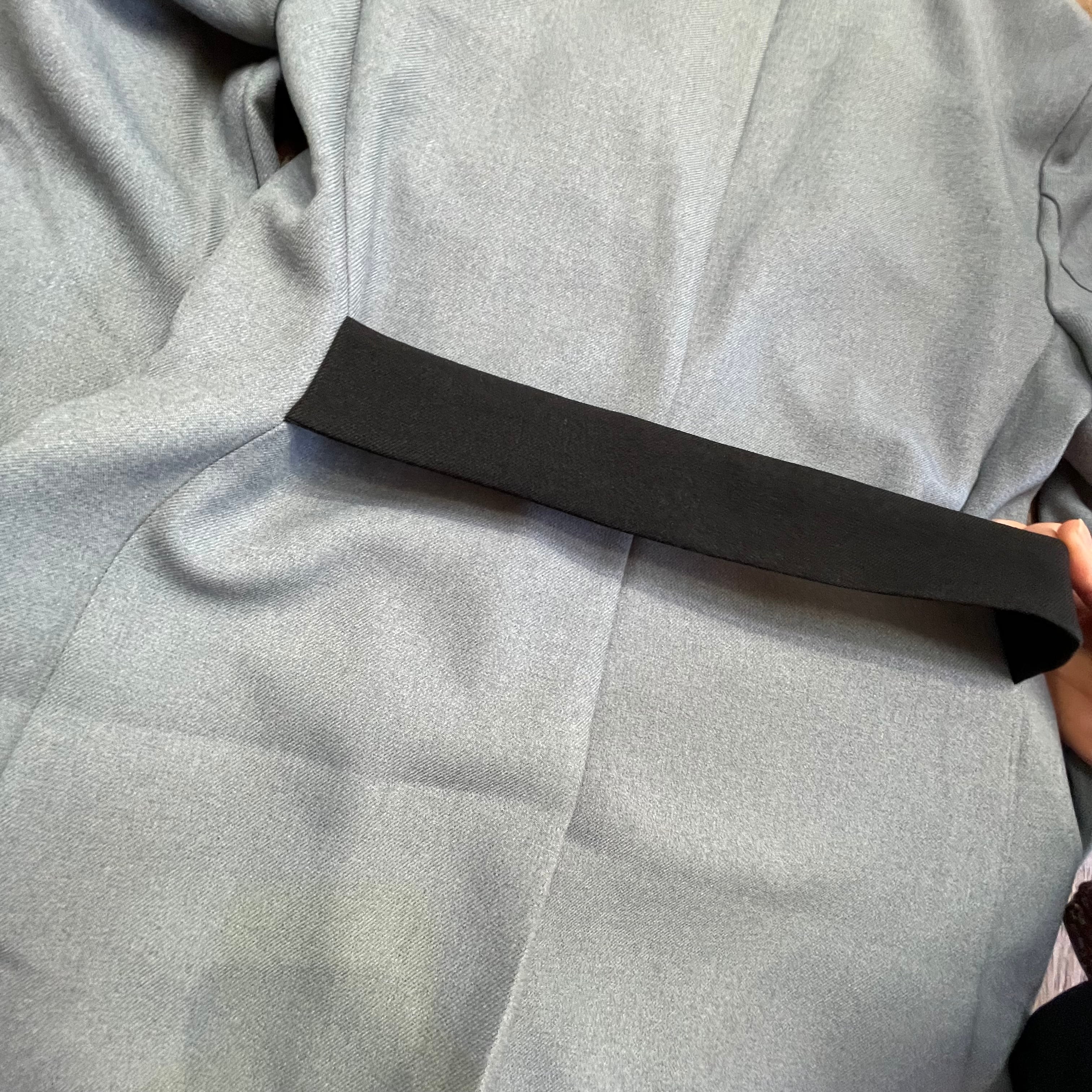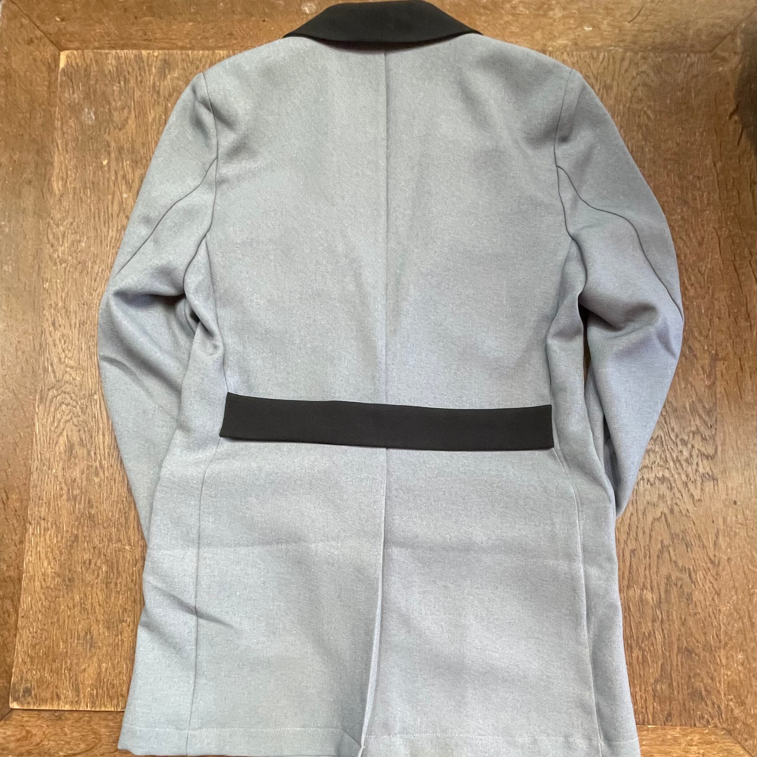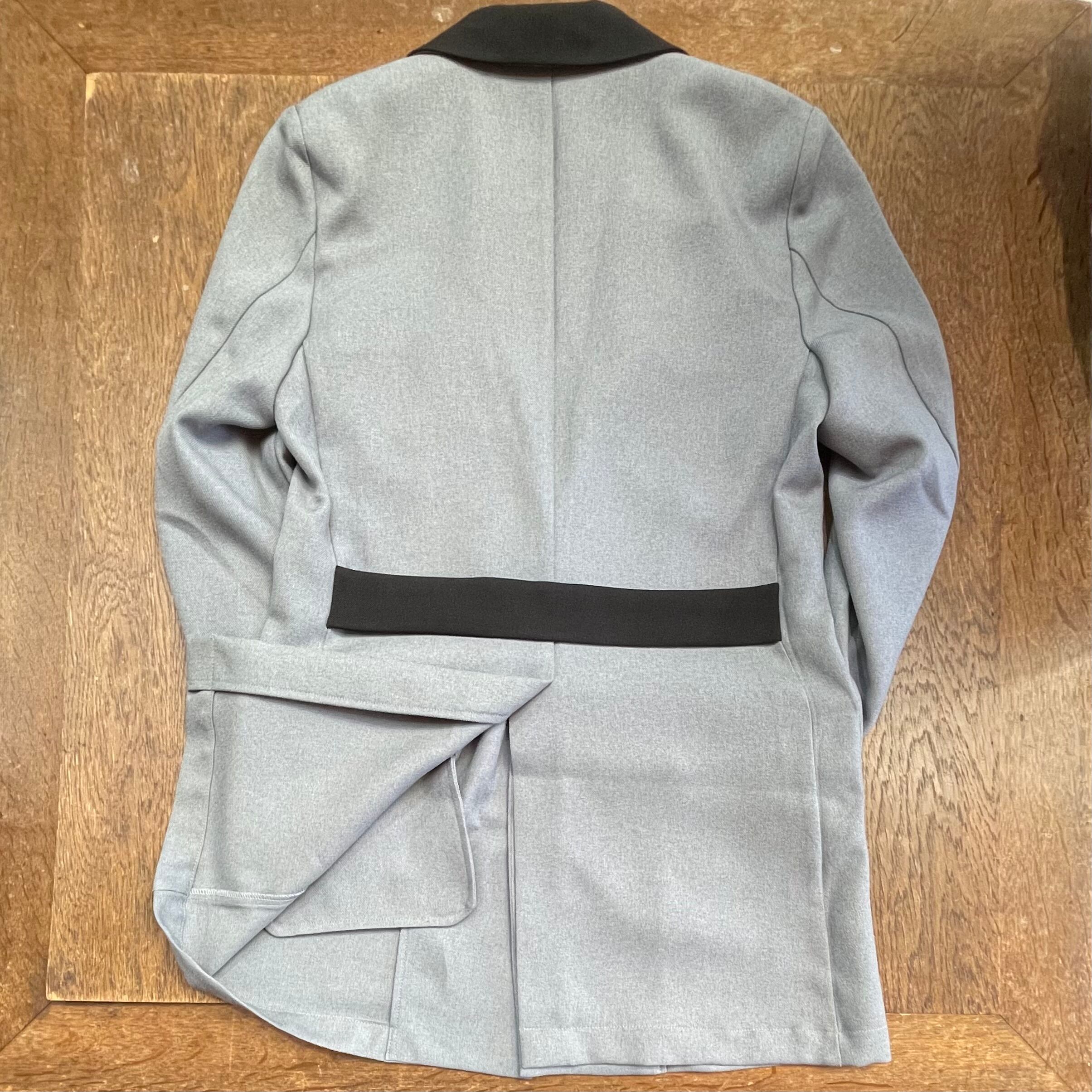 さらっと羽織れるリラキシング・シルエット、ややウェストシェイプ、4ポケット、深めのセンターベンツ、バックベルト。
