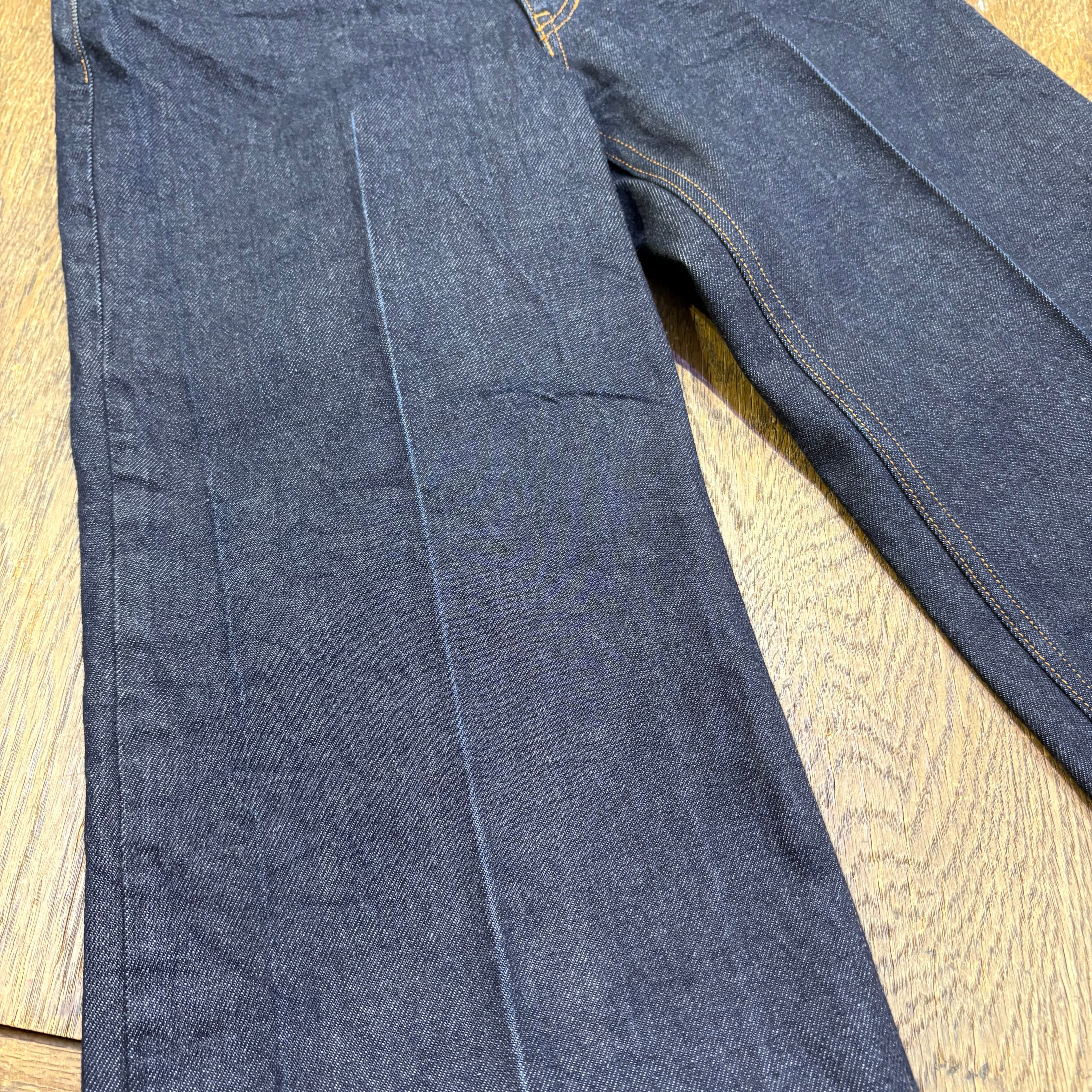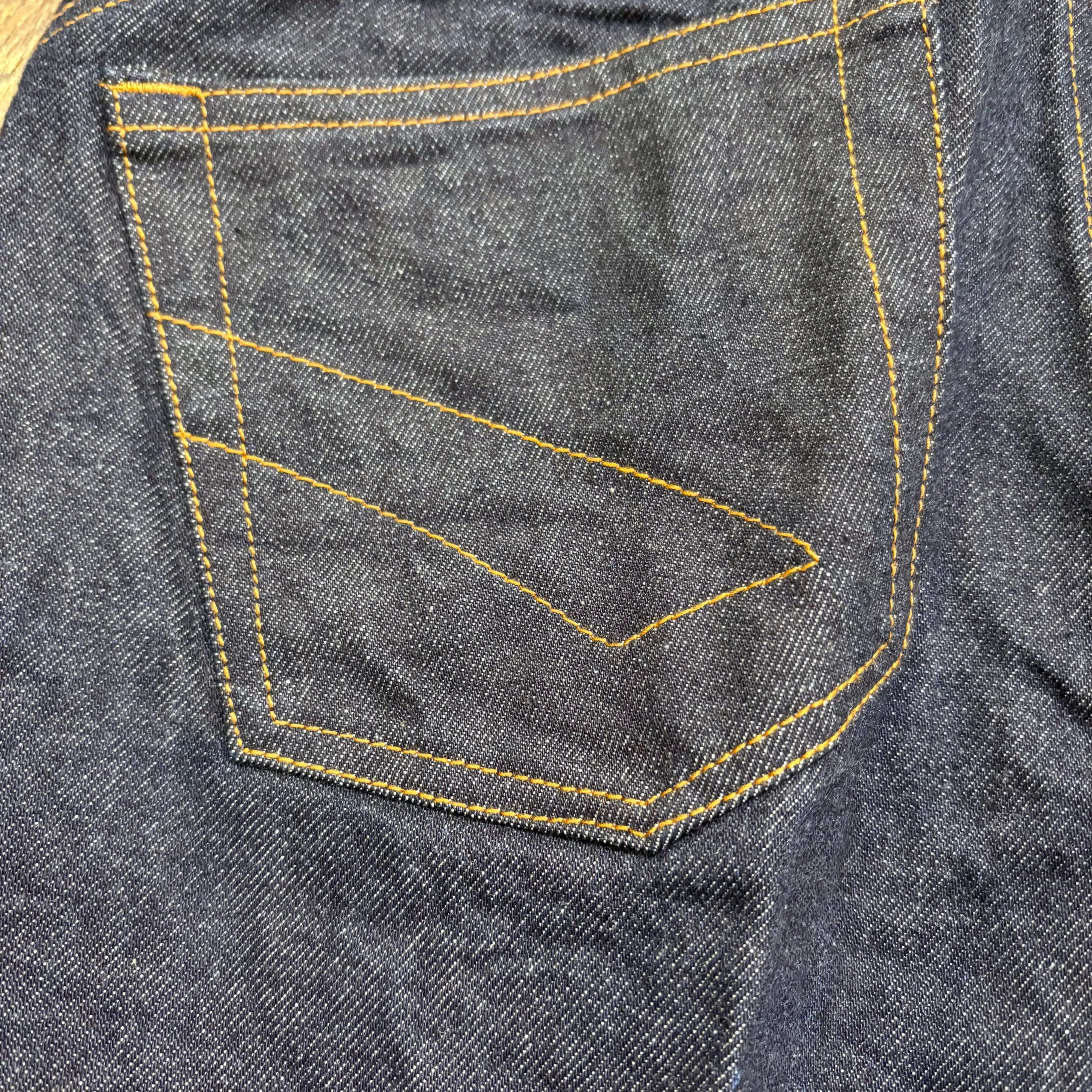 センターラインにアタリのダメージ加工、ワンウォッシュ仕上げ