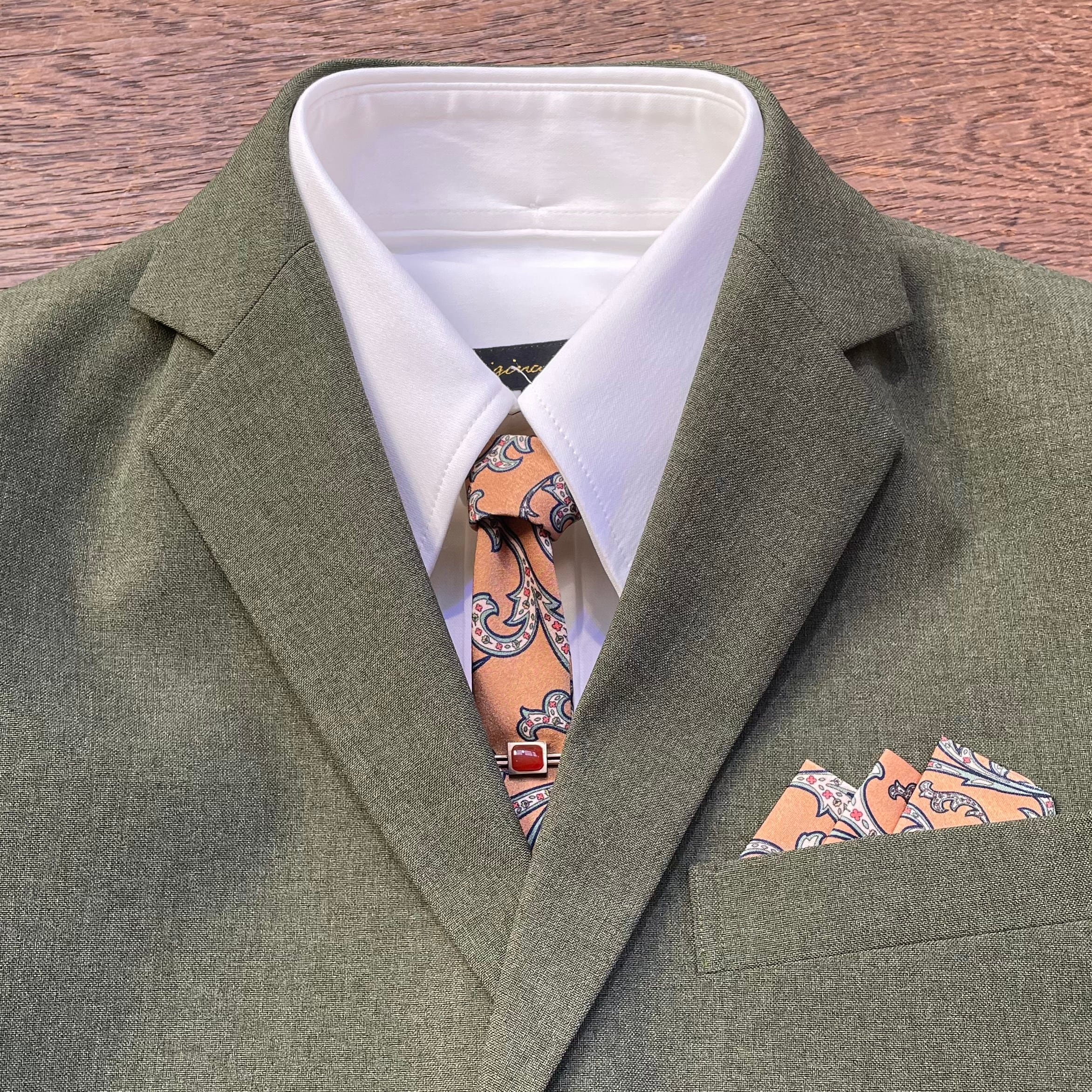 別売りのポケットチーフとの柄合わせを楽しむのもオススメ。
