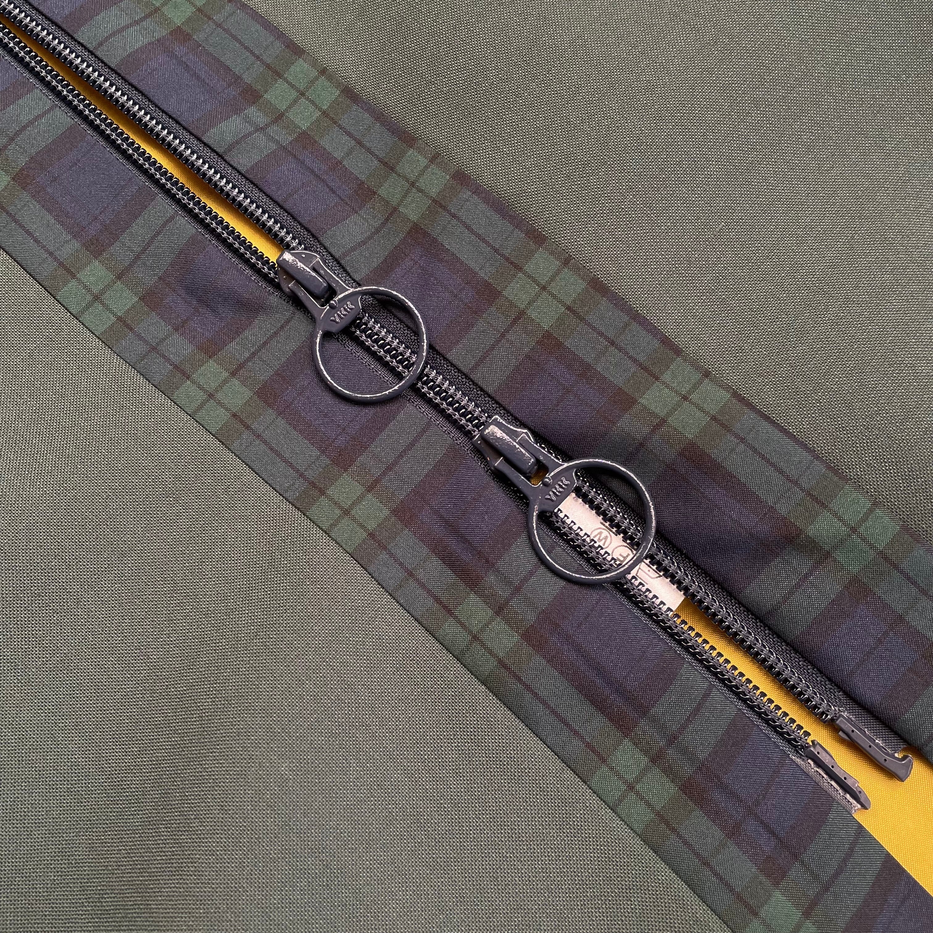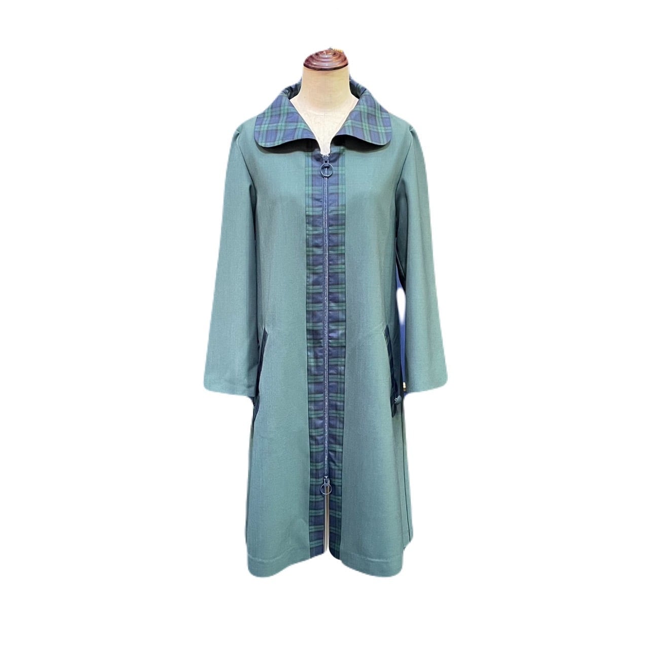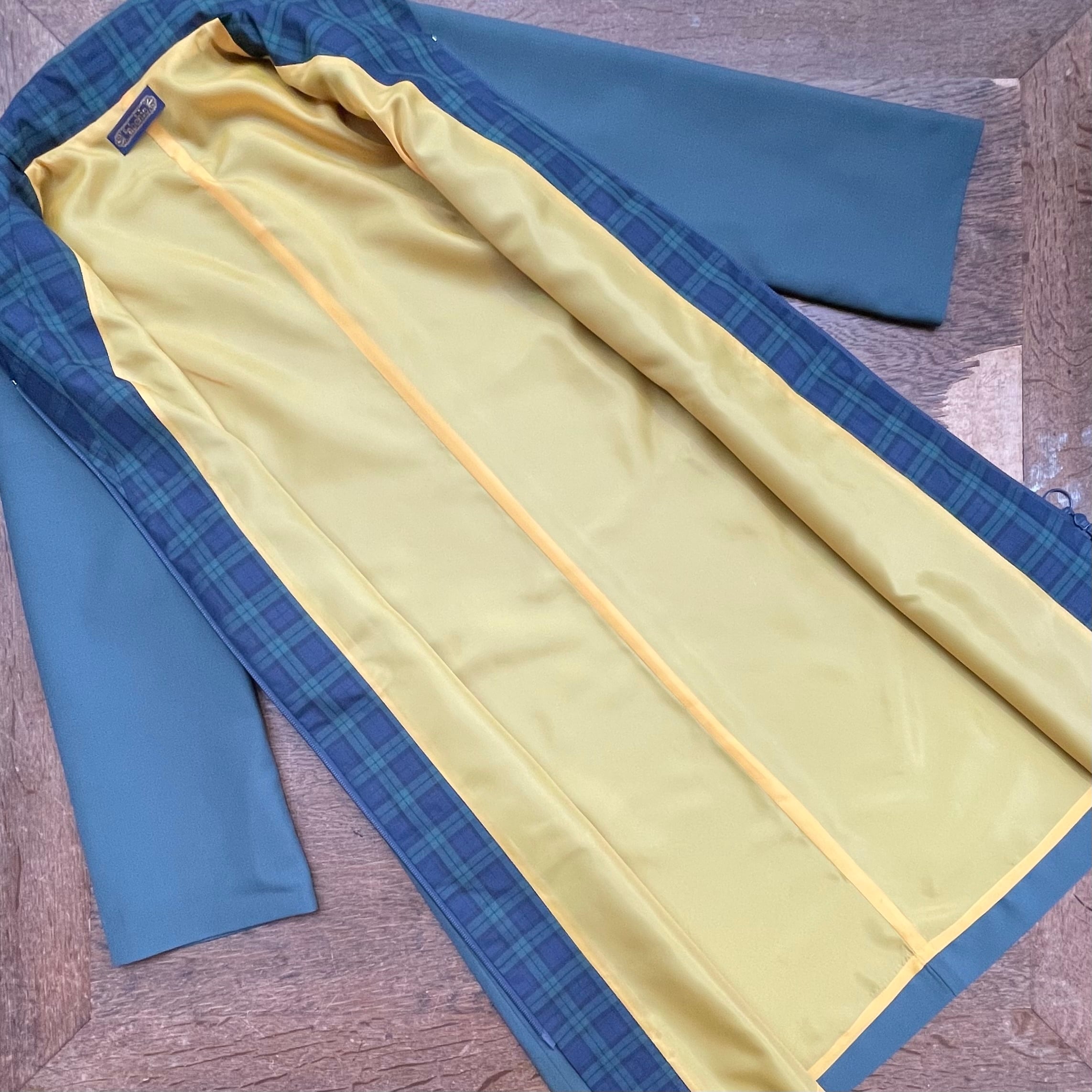 シックな色合いの中で、襟・ポケットのチェック柄の切り替えが絶妙なアクセント。