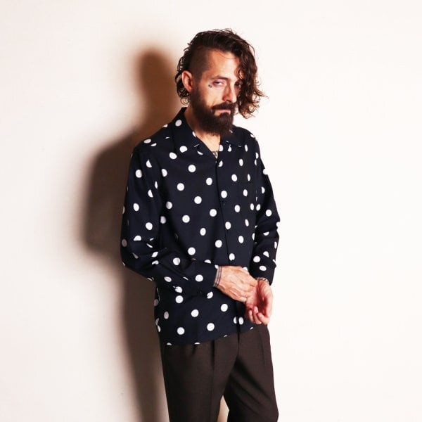 COVERED BUTTON OPEN COLLAR SHIRTS