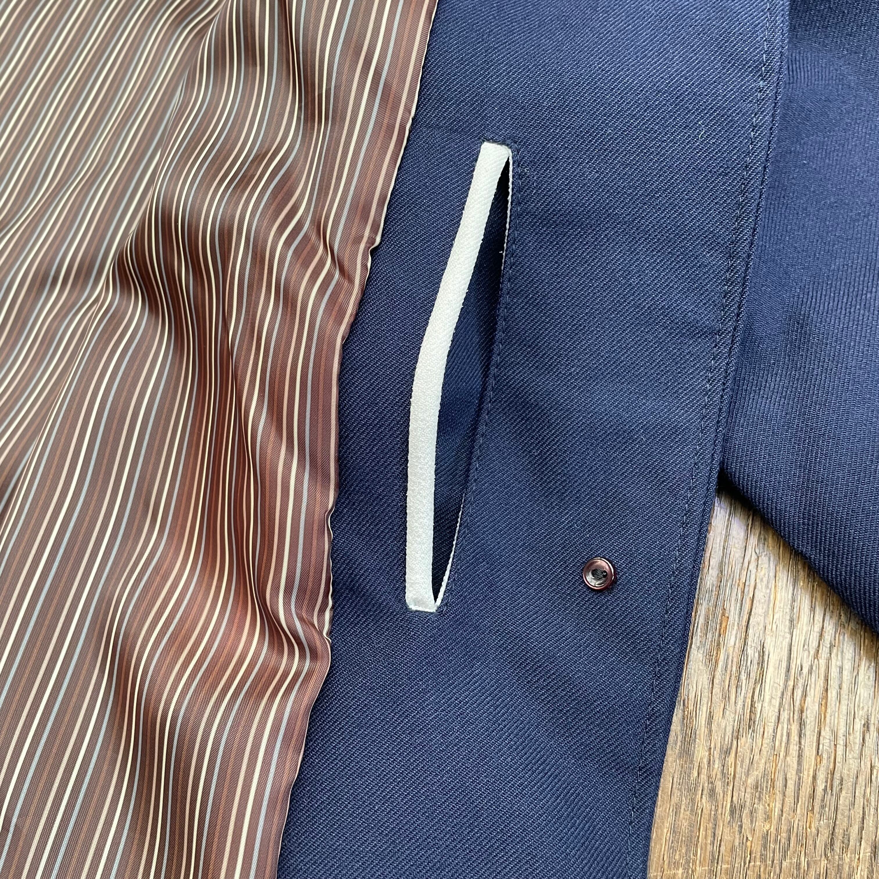 ネイビーのボディに爽やかな白いパイピングが映えます。