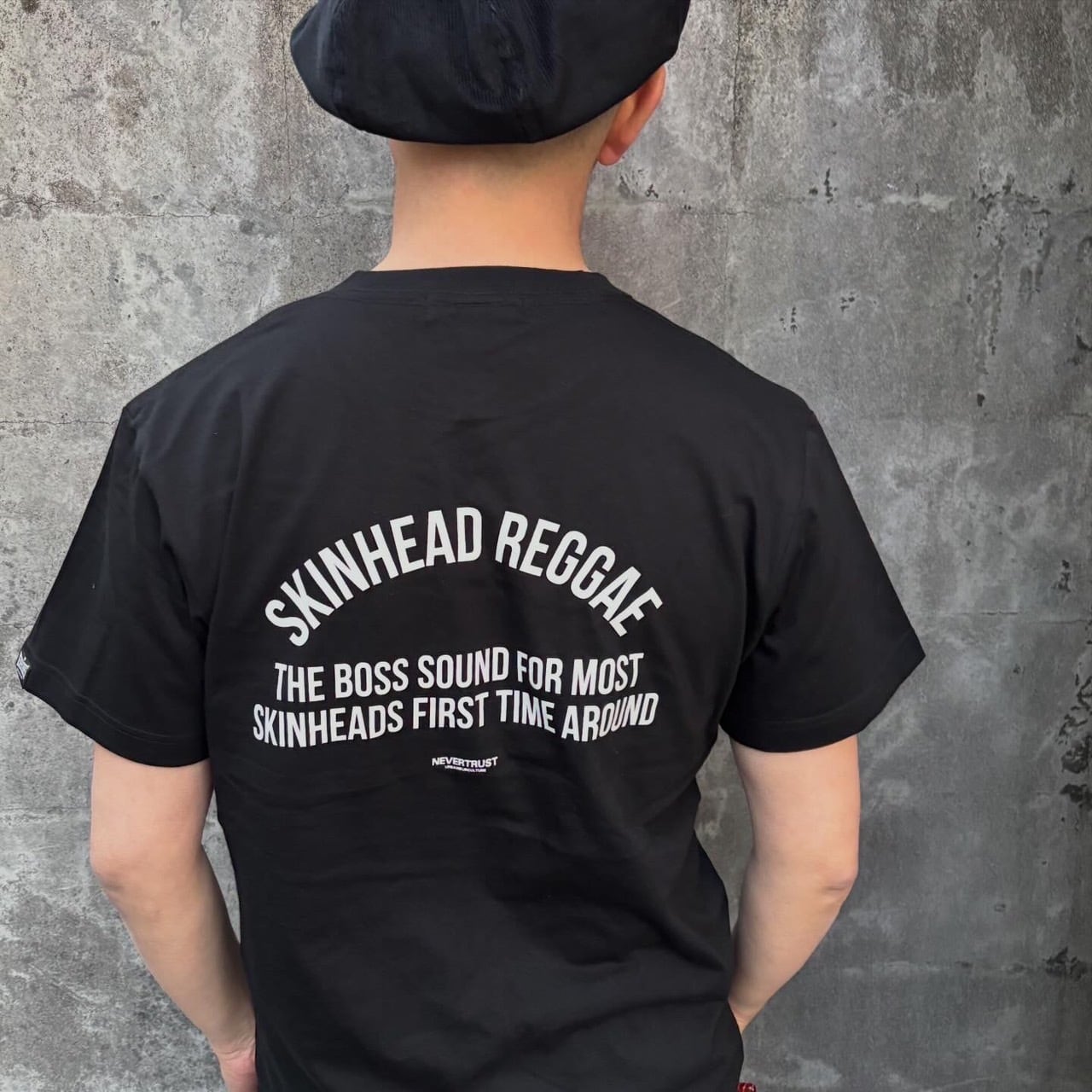 バックには"THE BOSS SOUND FOR MOST. SKINHEAD FIRST TIME AROUND"のフレーズをプリント。これはスキンヘッドカルチャーの歴史の記した名著「Spirit of '69 : A Skinhead Bible」(ジョージ・マーシャル著)の中で、当時のレゲエ / ボスサウンドを象徴する言葉として使われた印象的なフレーズです。袖にピスネーム付き。