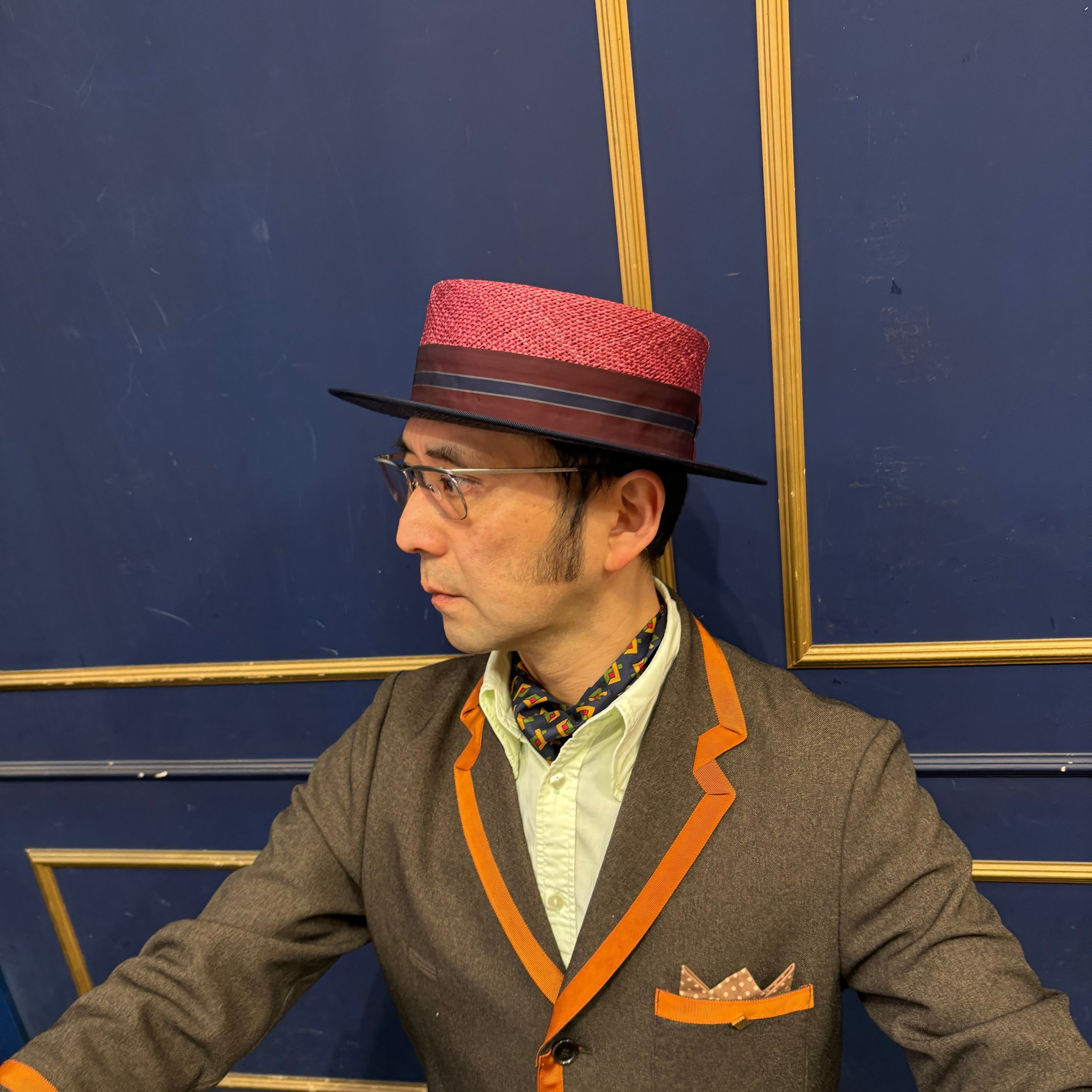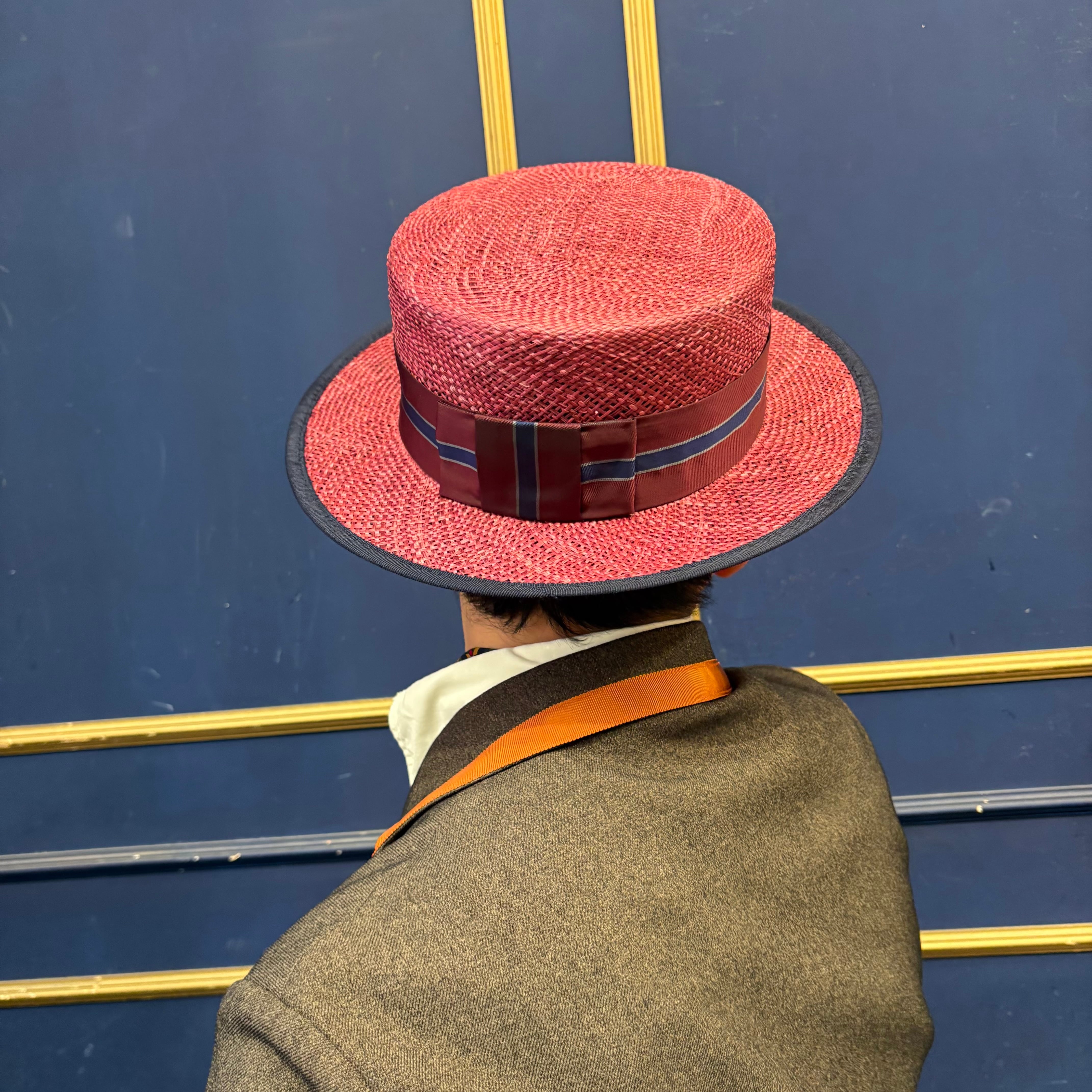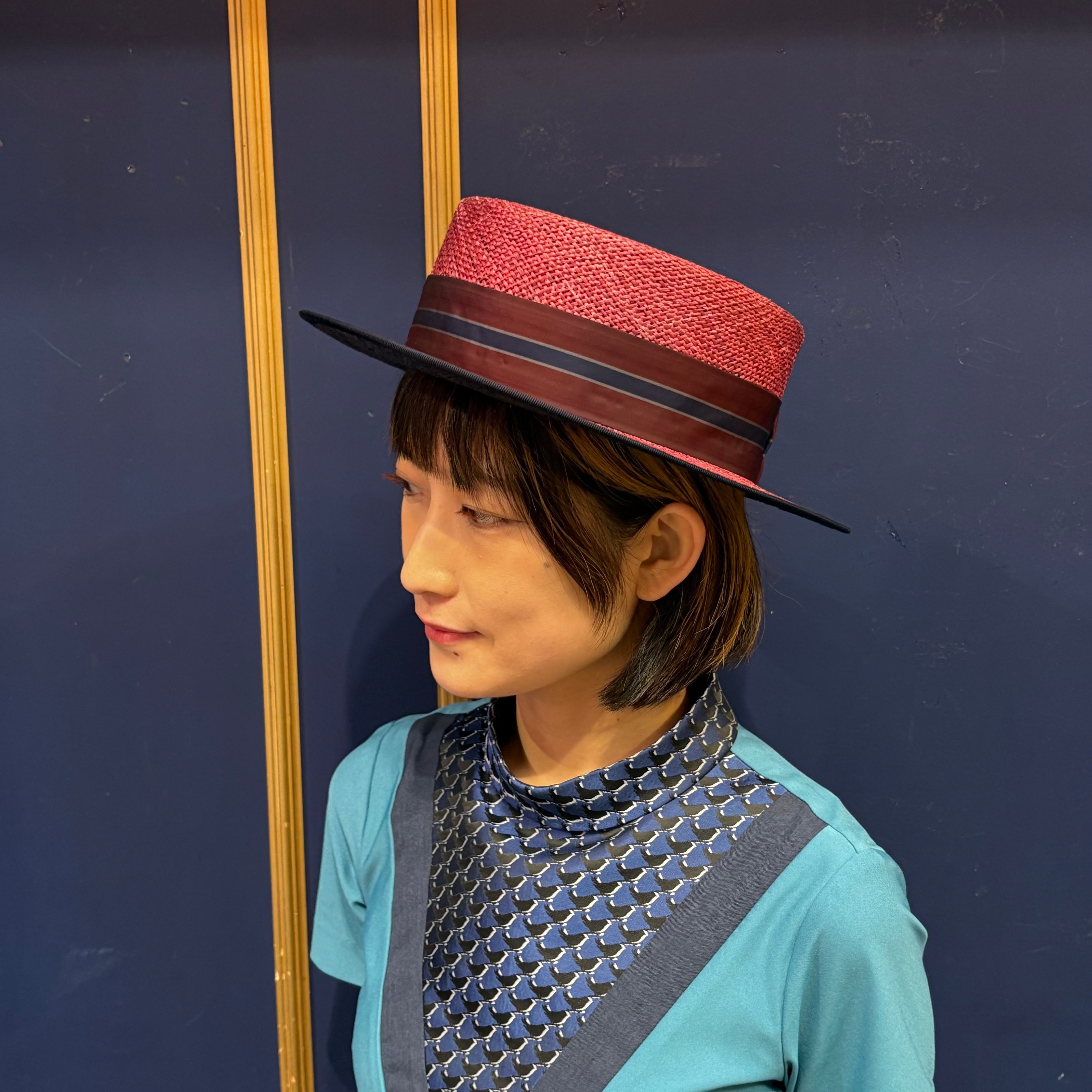 ファブシックカンカン帽 バーガンディ×ネイビー