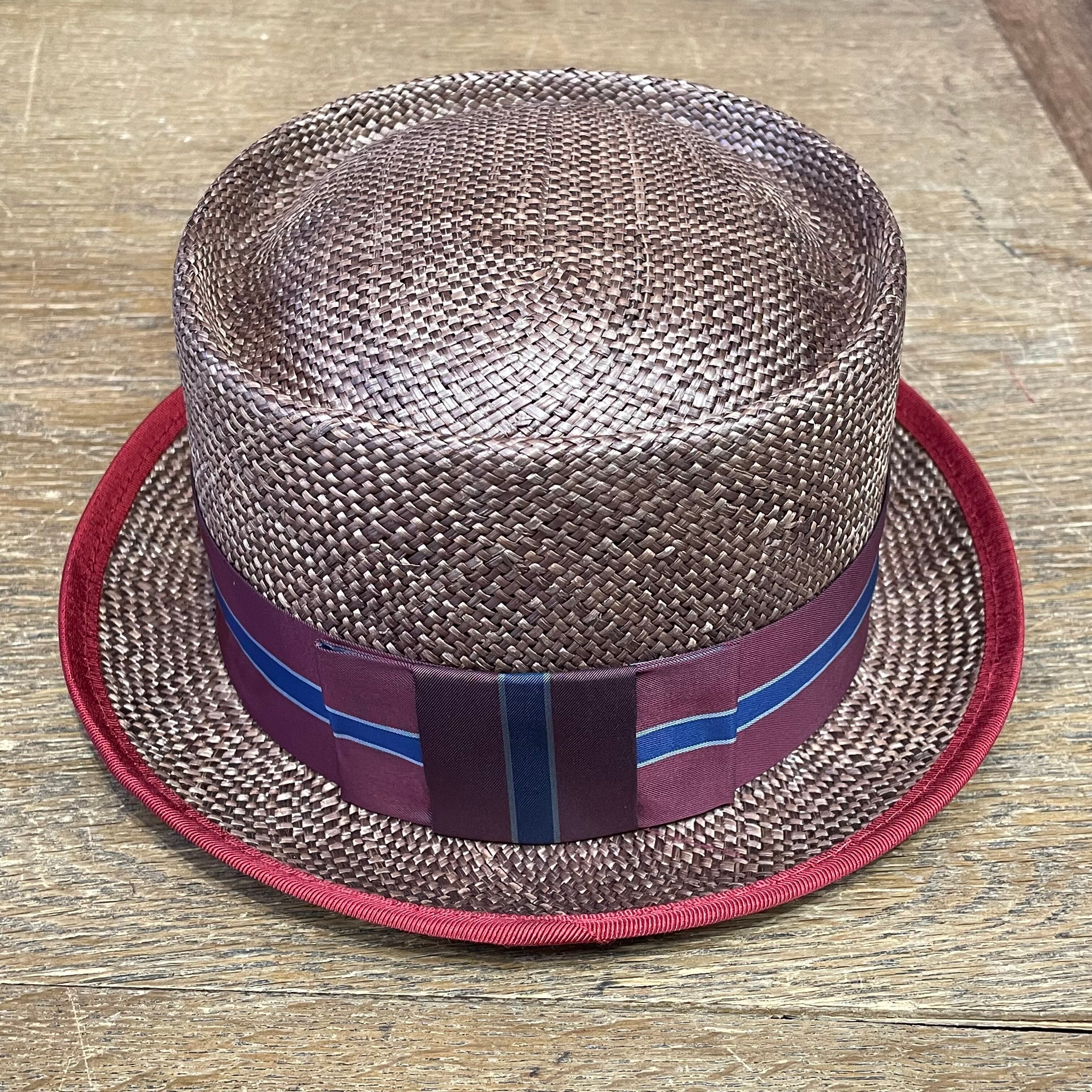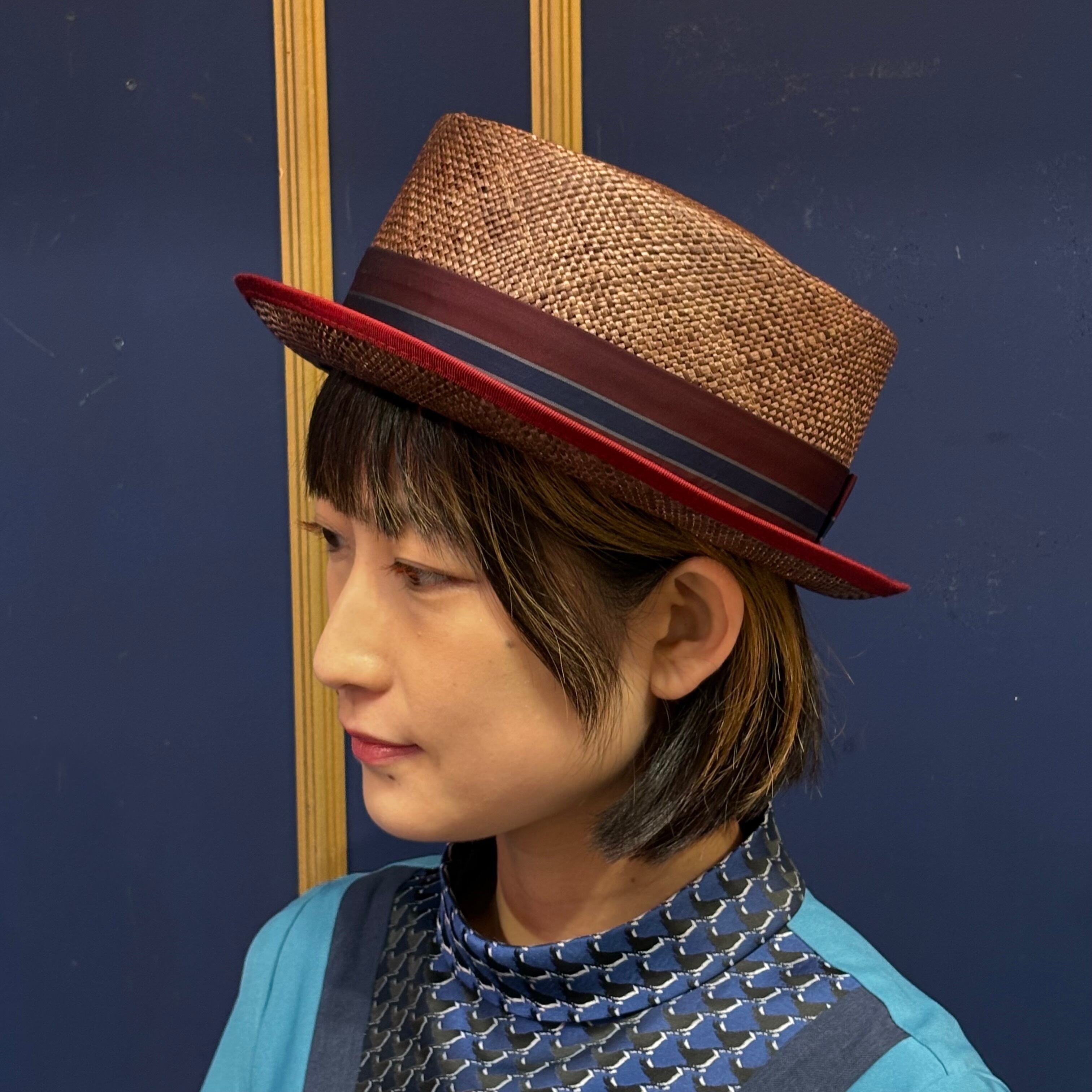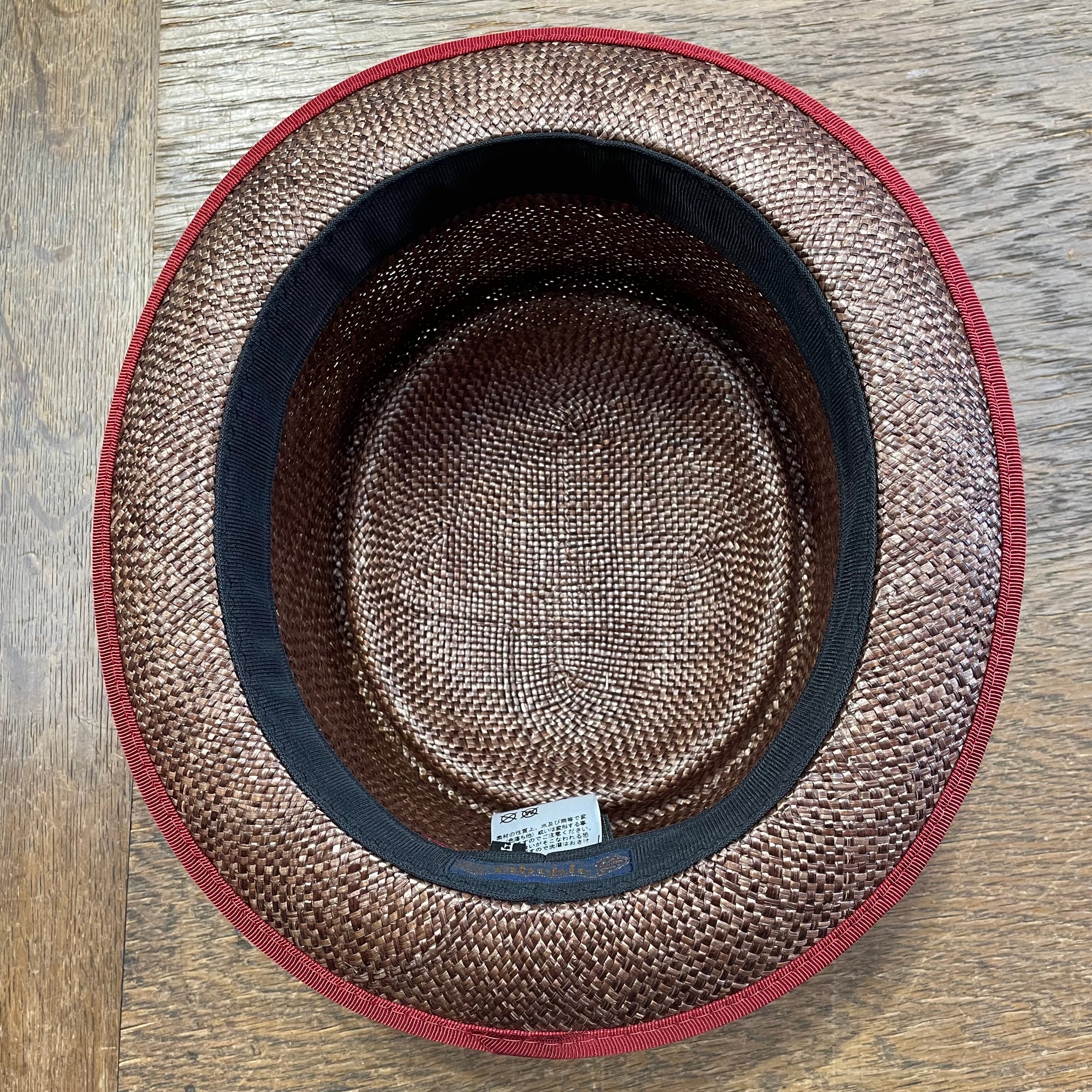 ファブシック ショートブリム ポークパイハット ブラウン×バーガンディ