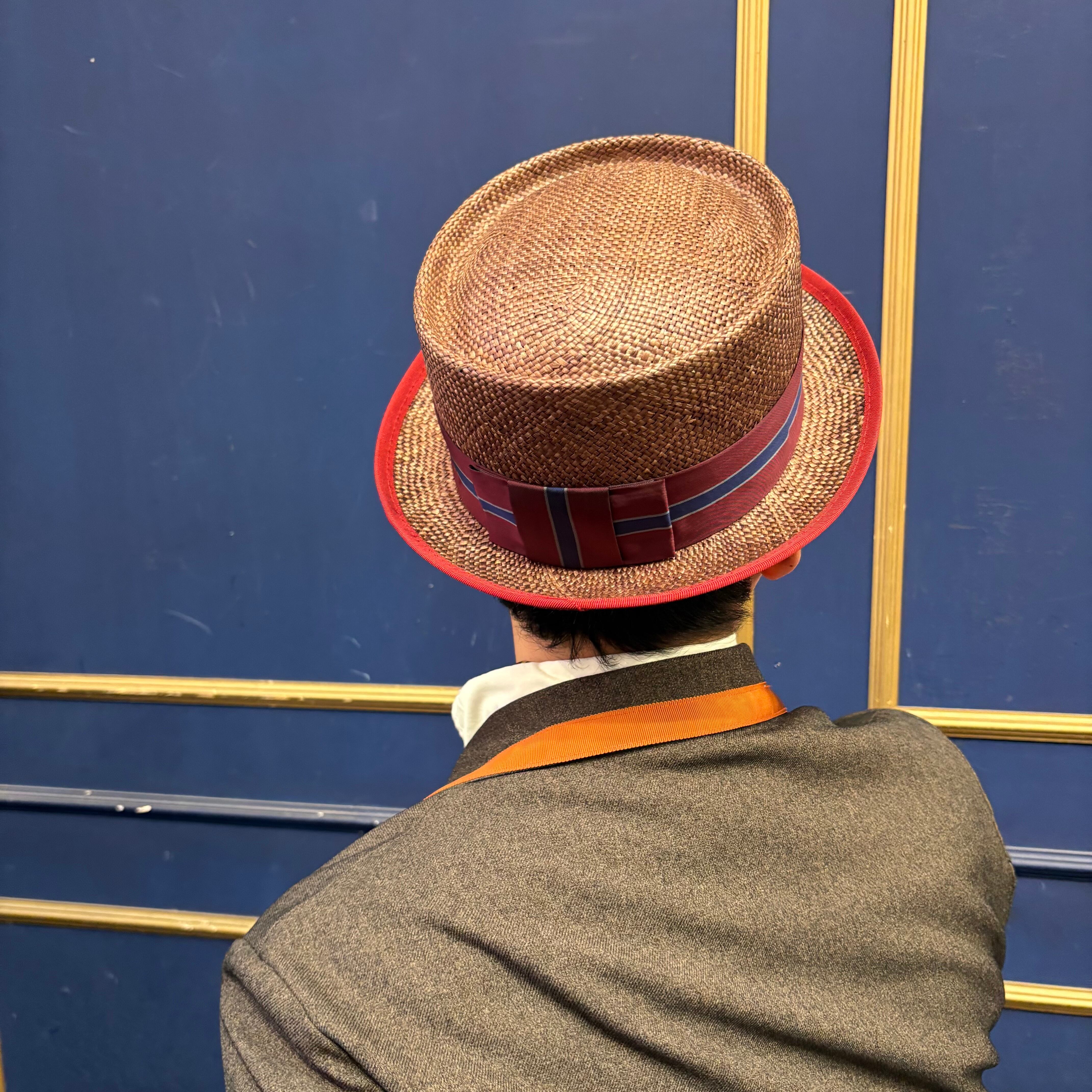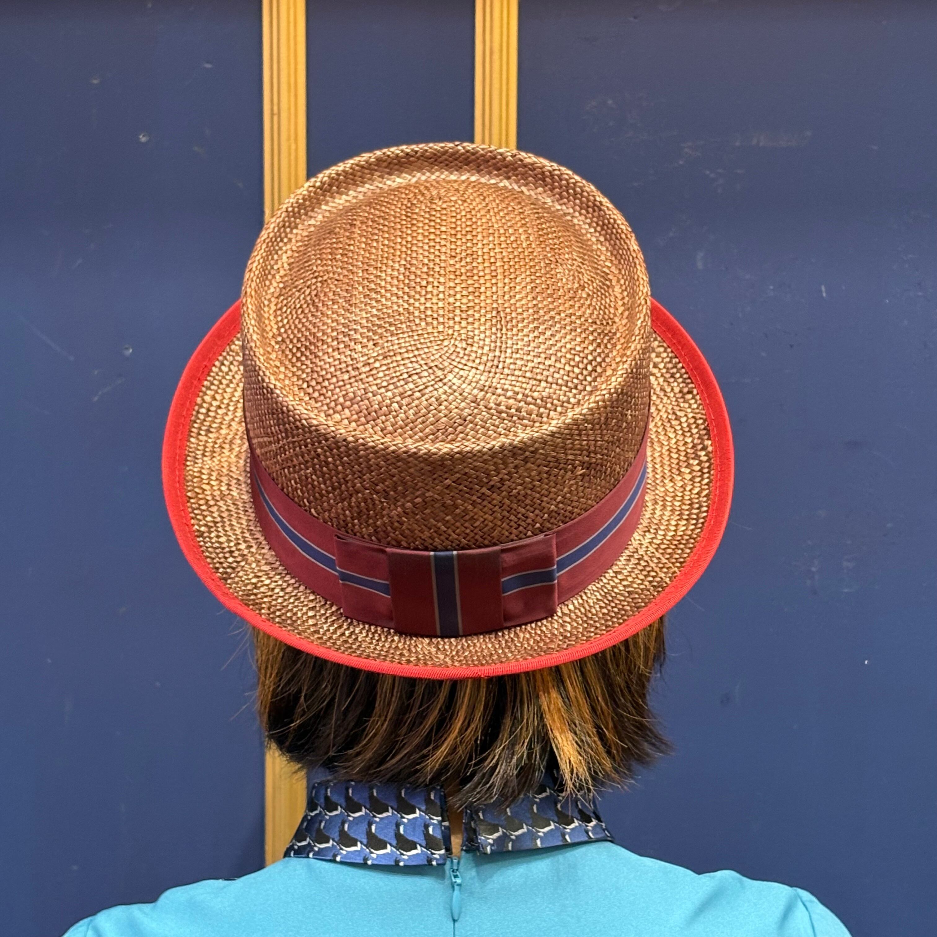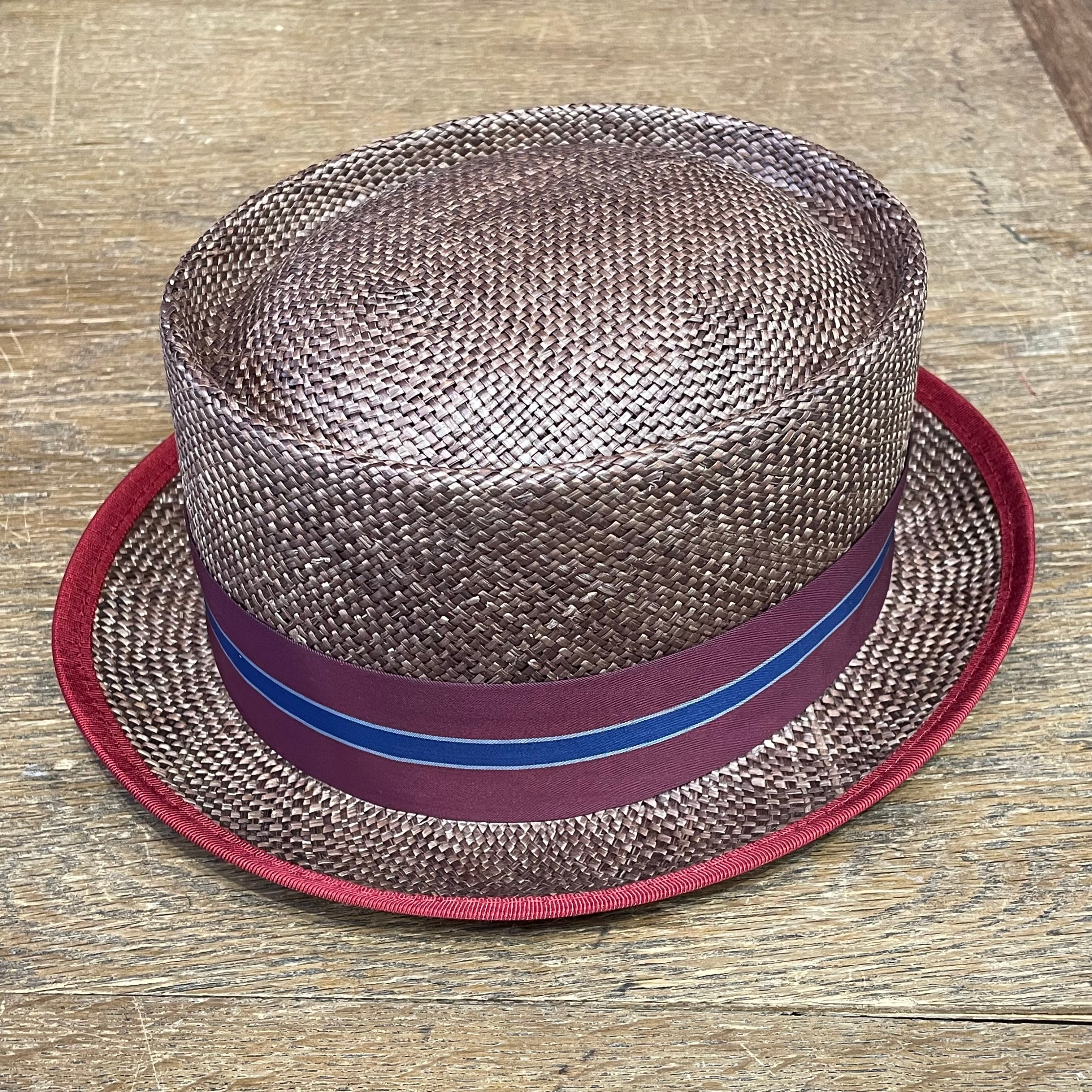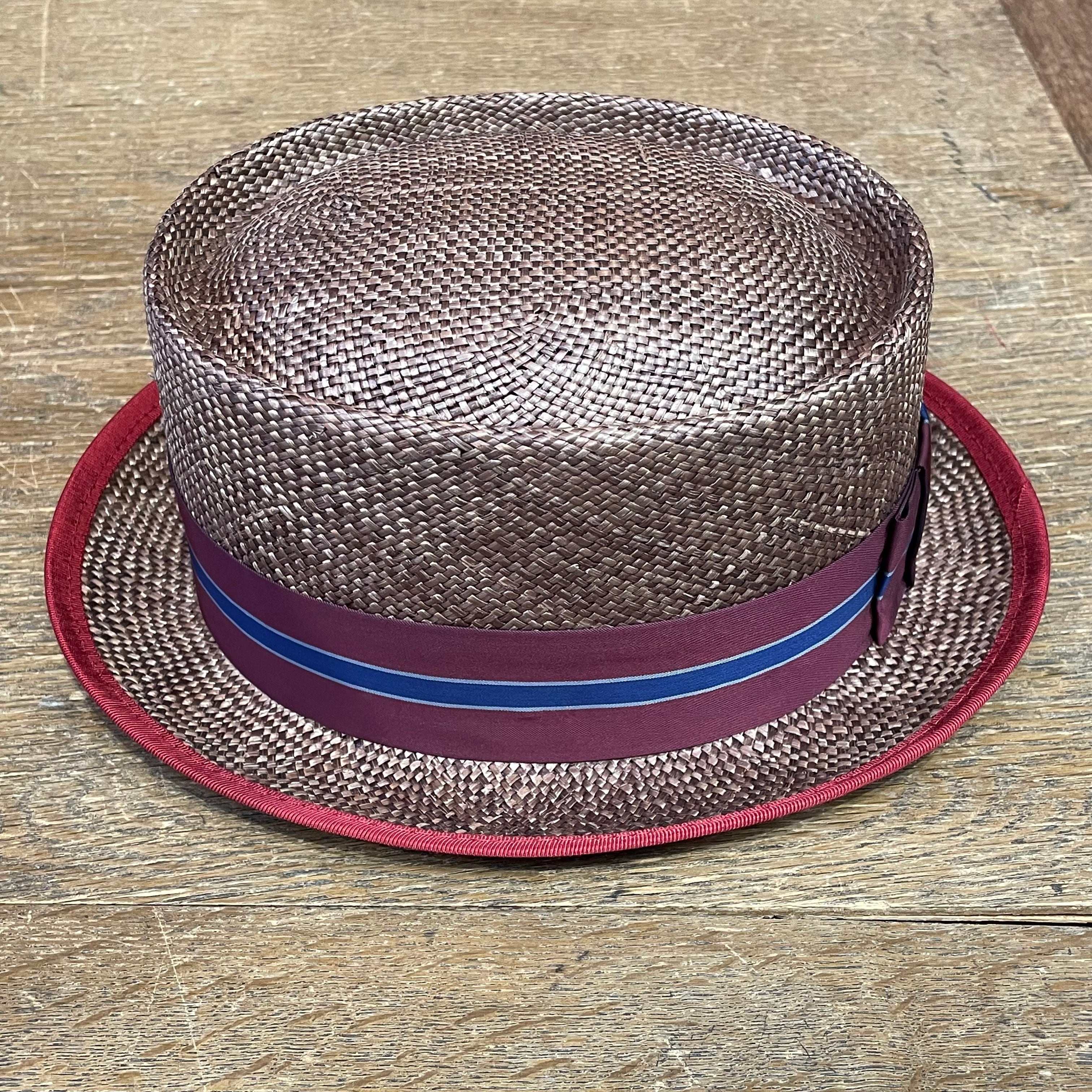 ファブシック ショートブリム ポークパイハット ブラウン×バーガンディ
