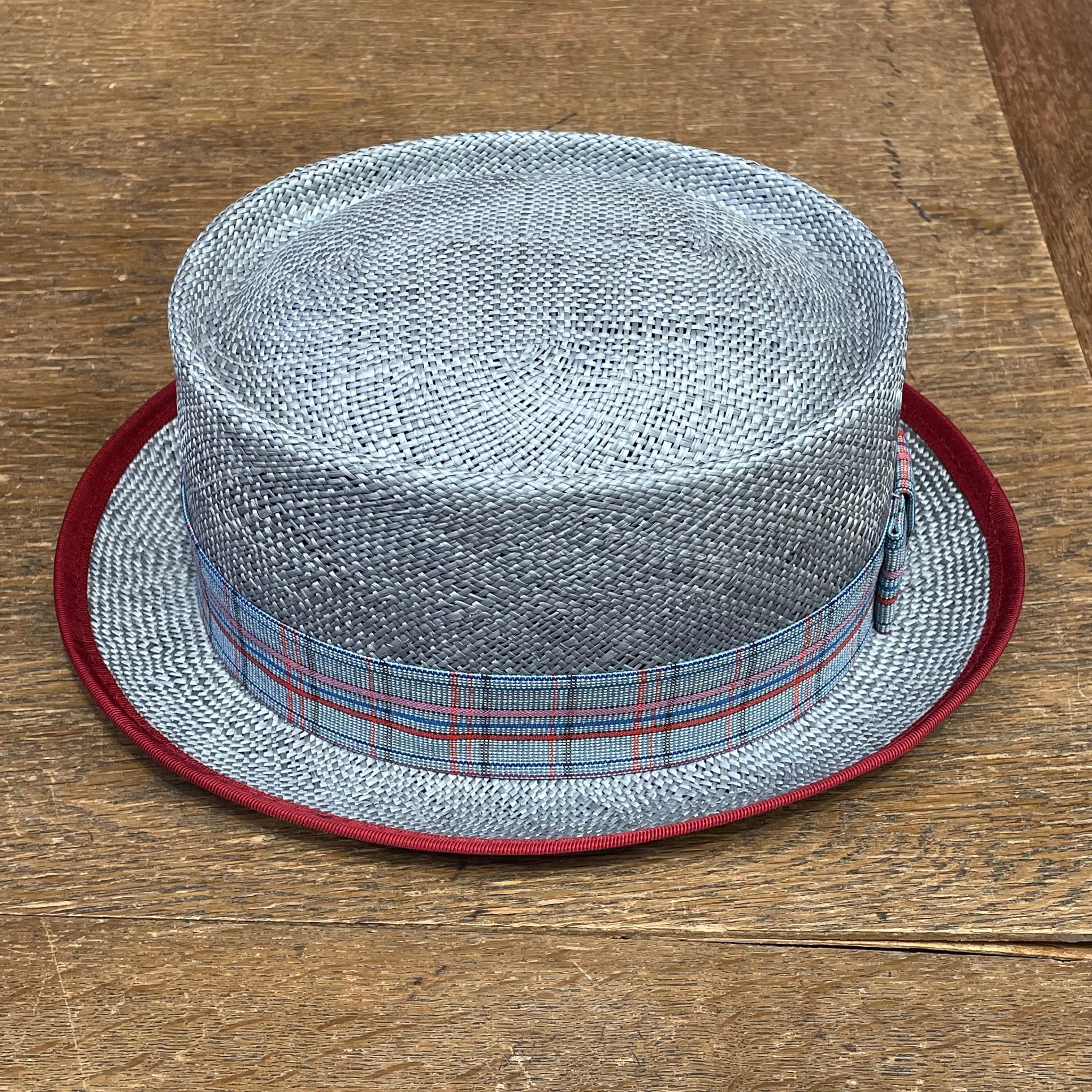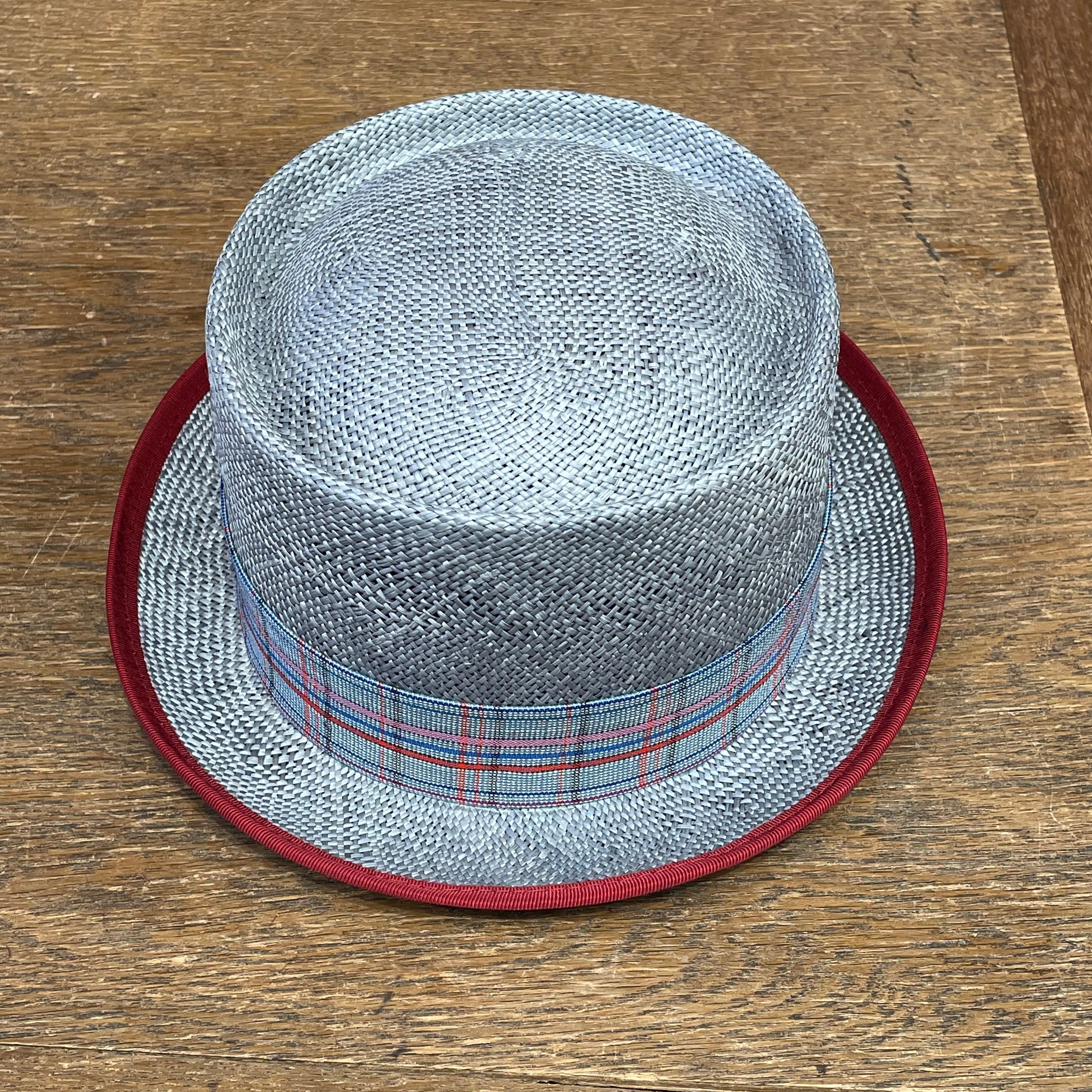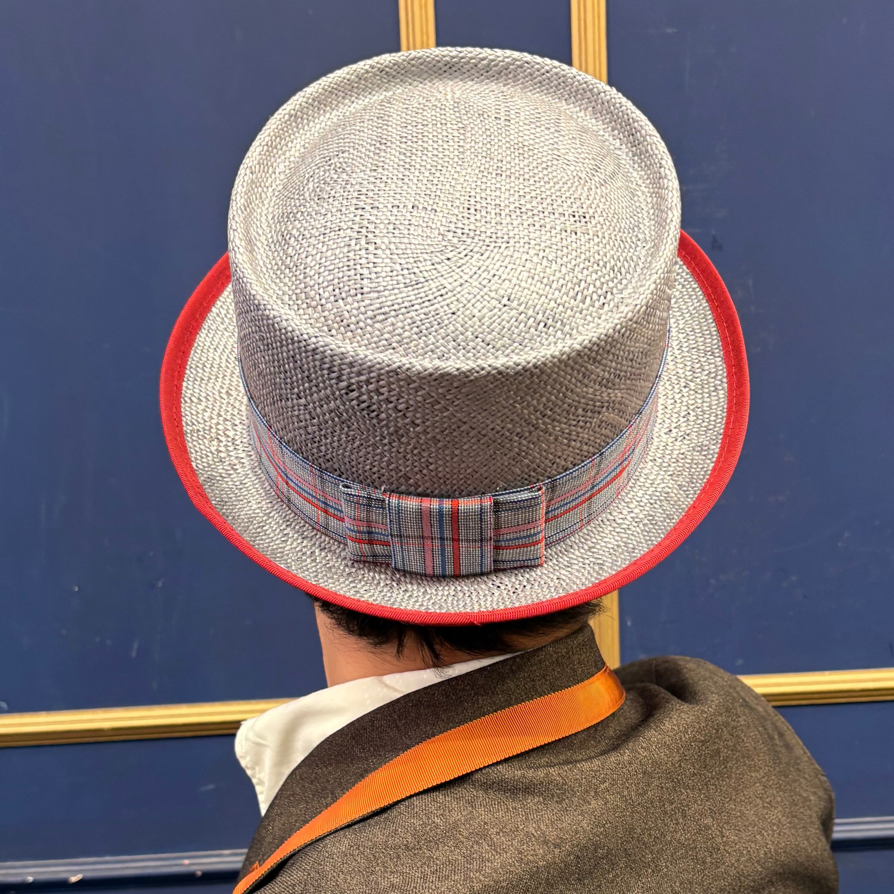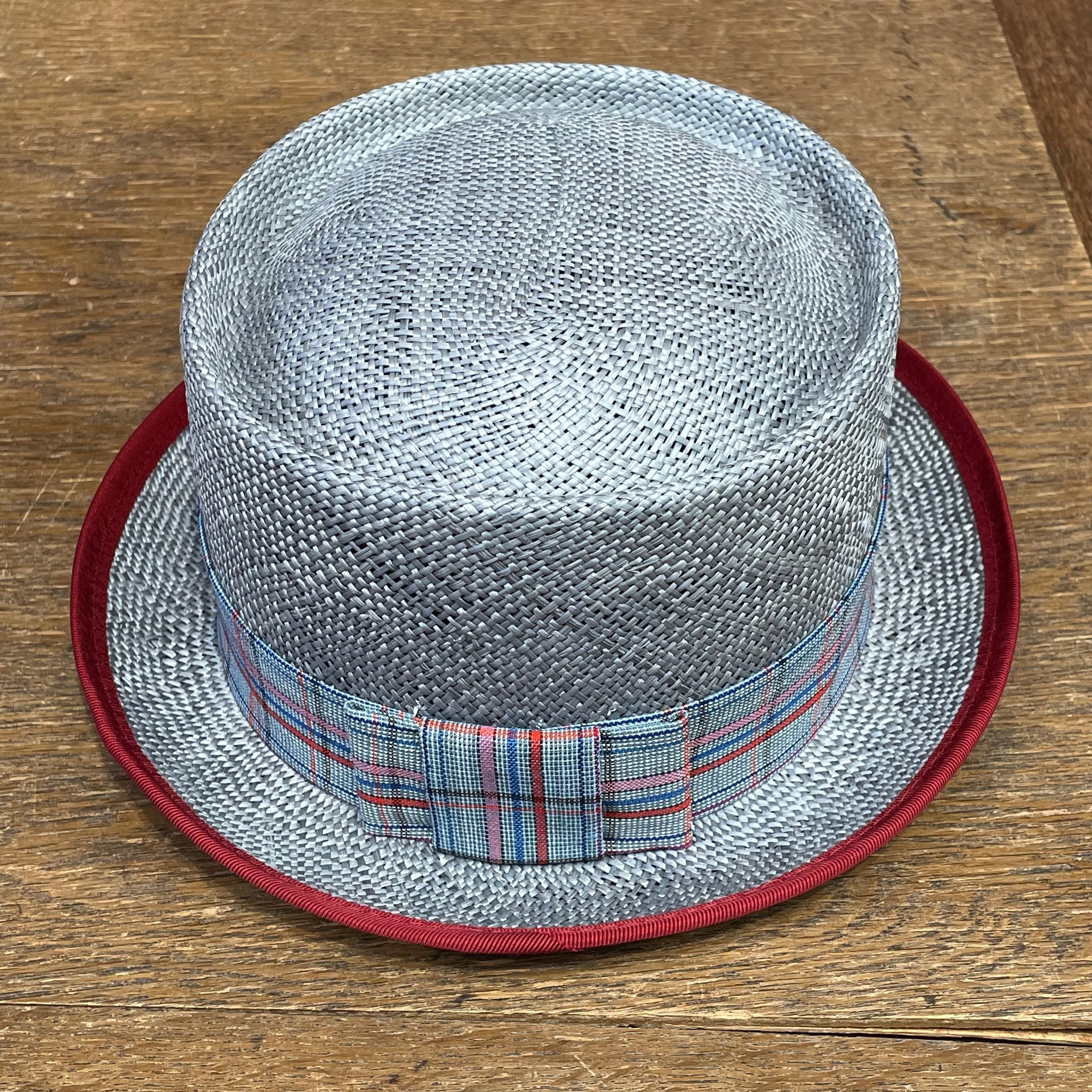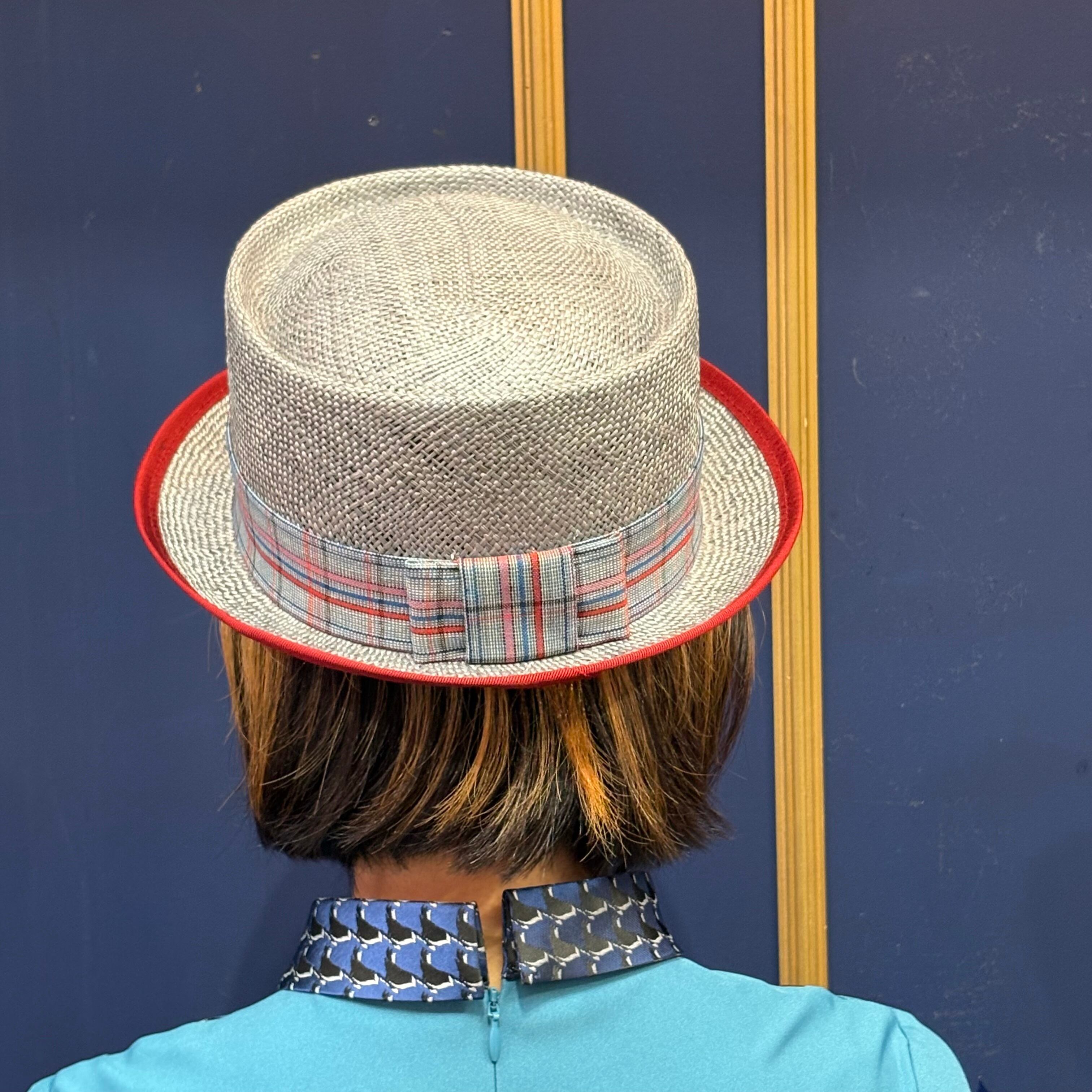 ファブシック ショートブリム ポークパイハット アイスグレー×レッド