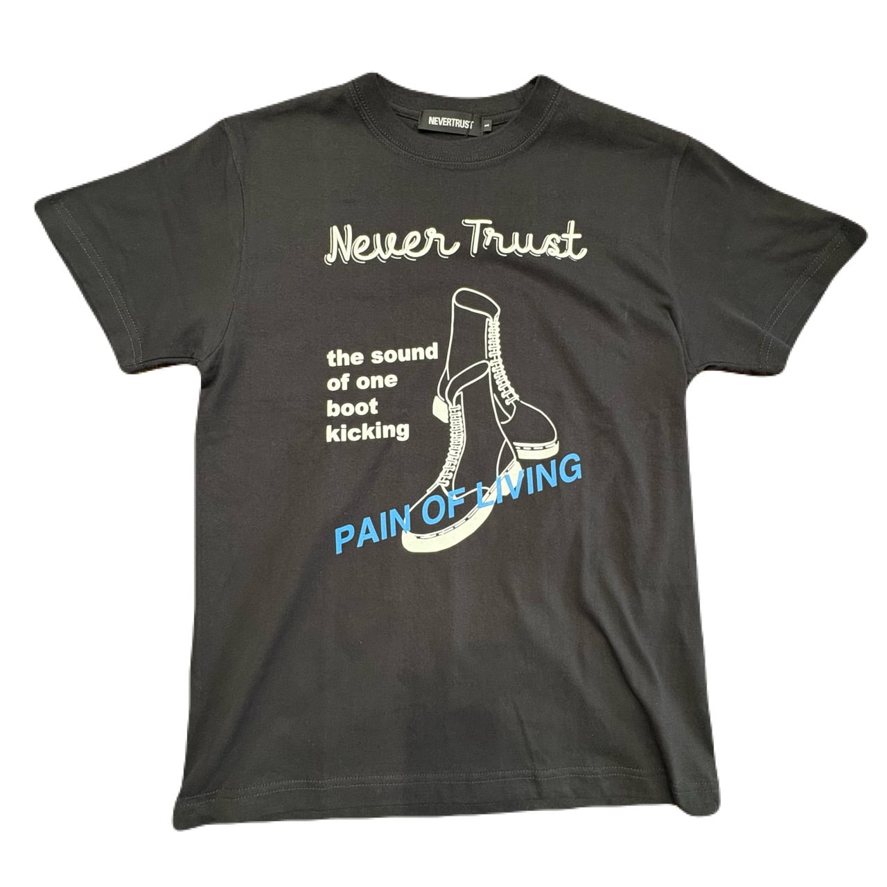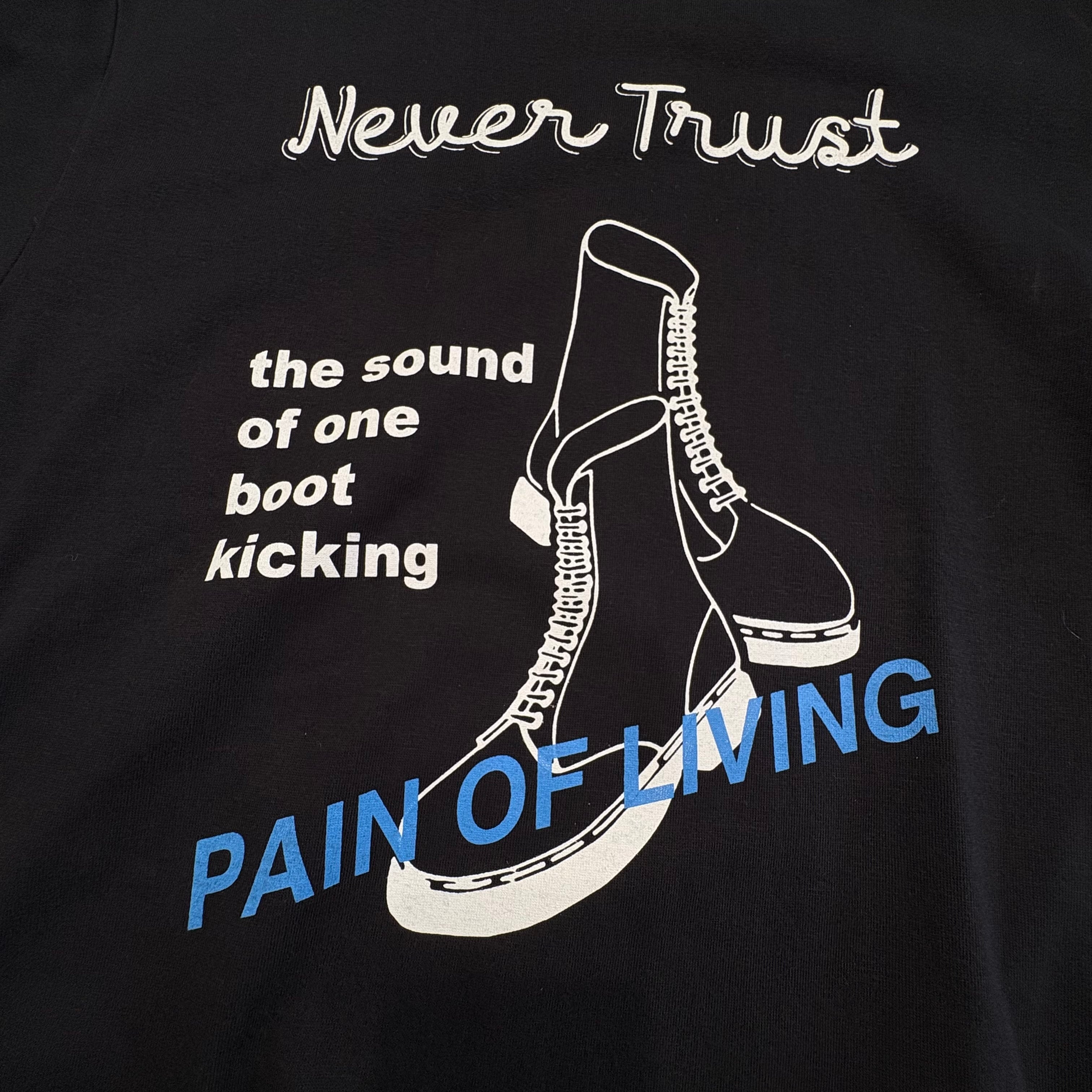 PAIN OF LIVINGは「生きる痛み」。生きることに伴う苦悩や葛藤を孕んだ、スキンヘッドらしいメッセージ、印象的なフレーズです。袖にピスネーム付き。