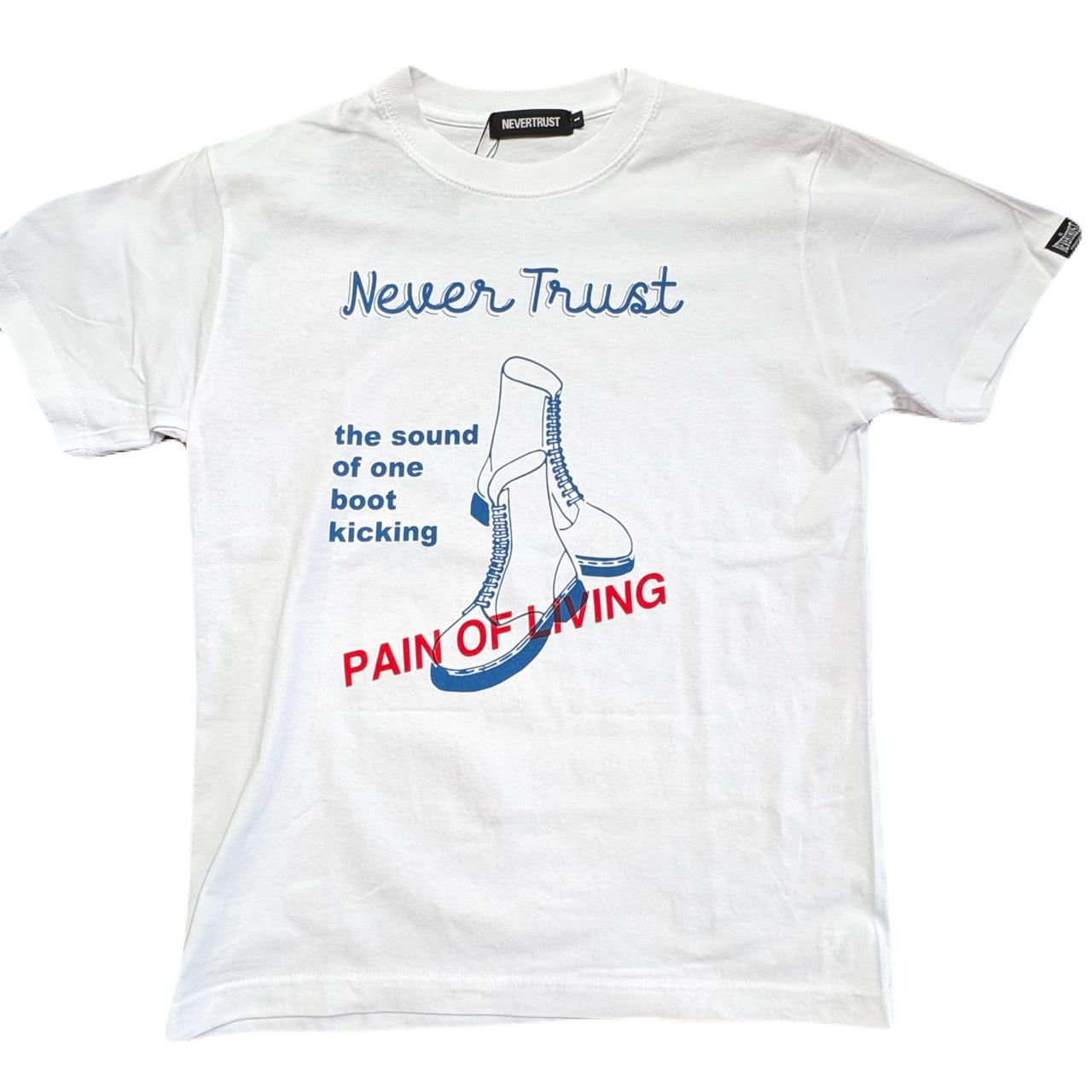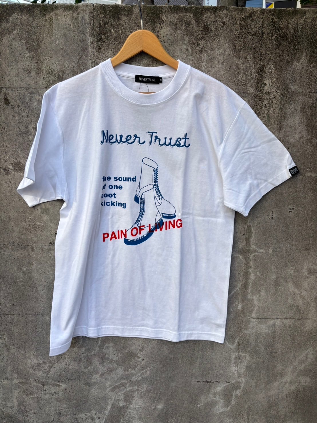 PAIN OF LIVINGは「生きる痛み」。生きることに伴う苦悩や葛藤を孕んだ、スキンヘッドらしいメッセージ、印象的なフレーズです。袖にピスネーム付き。