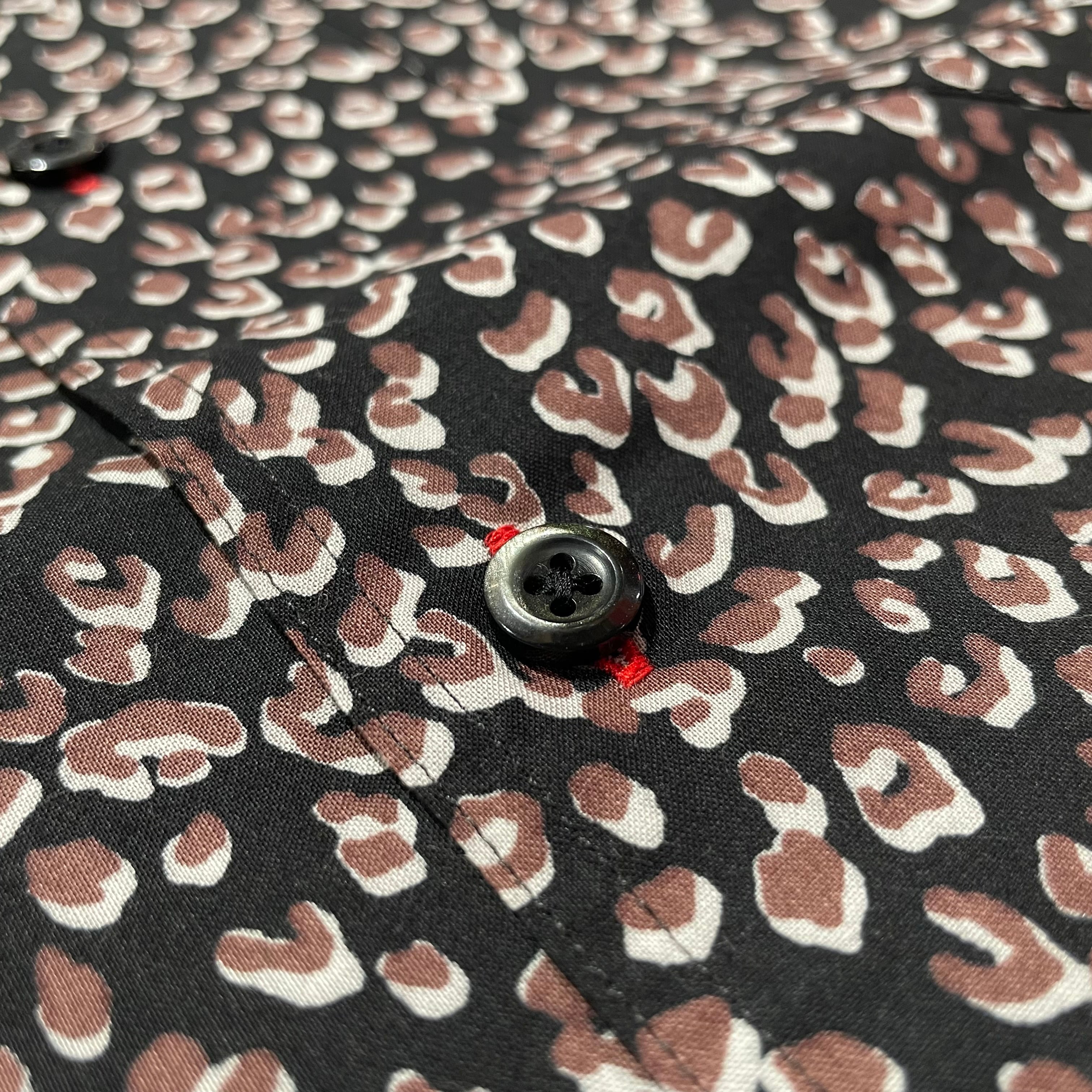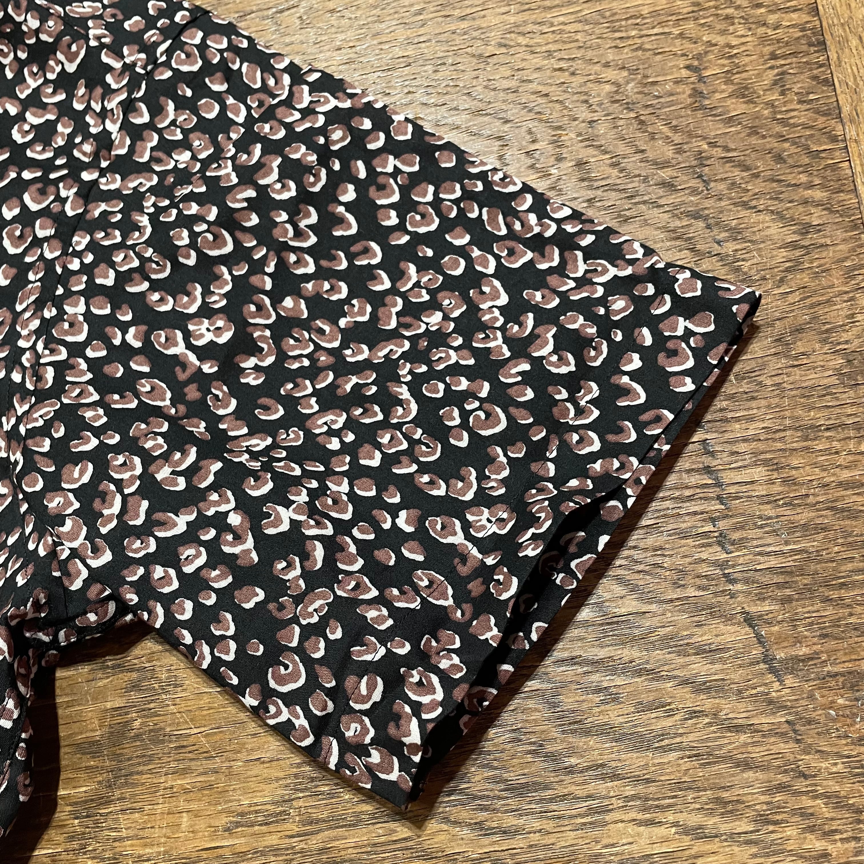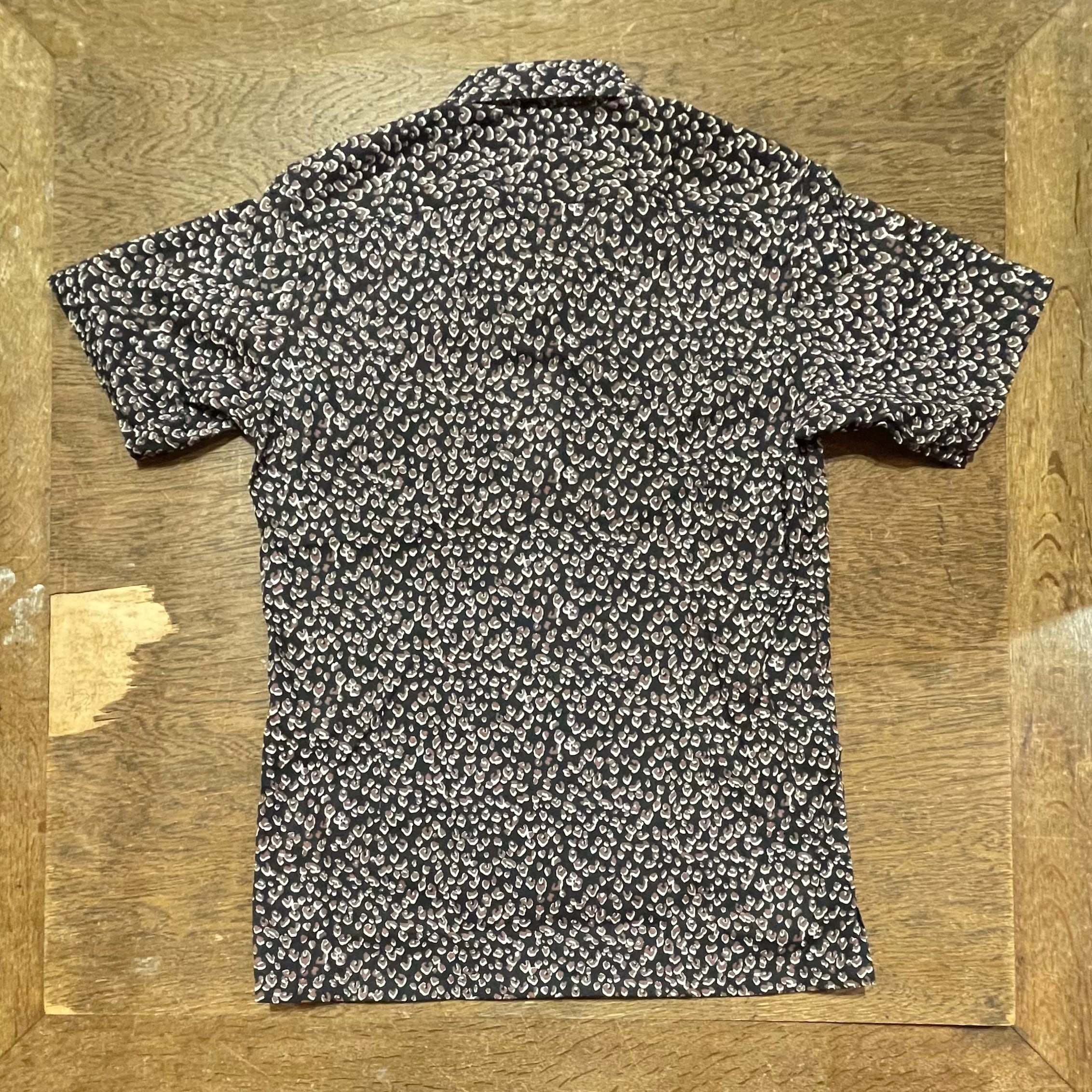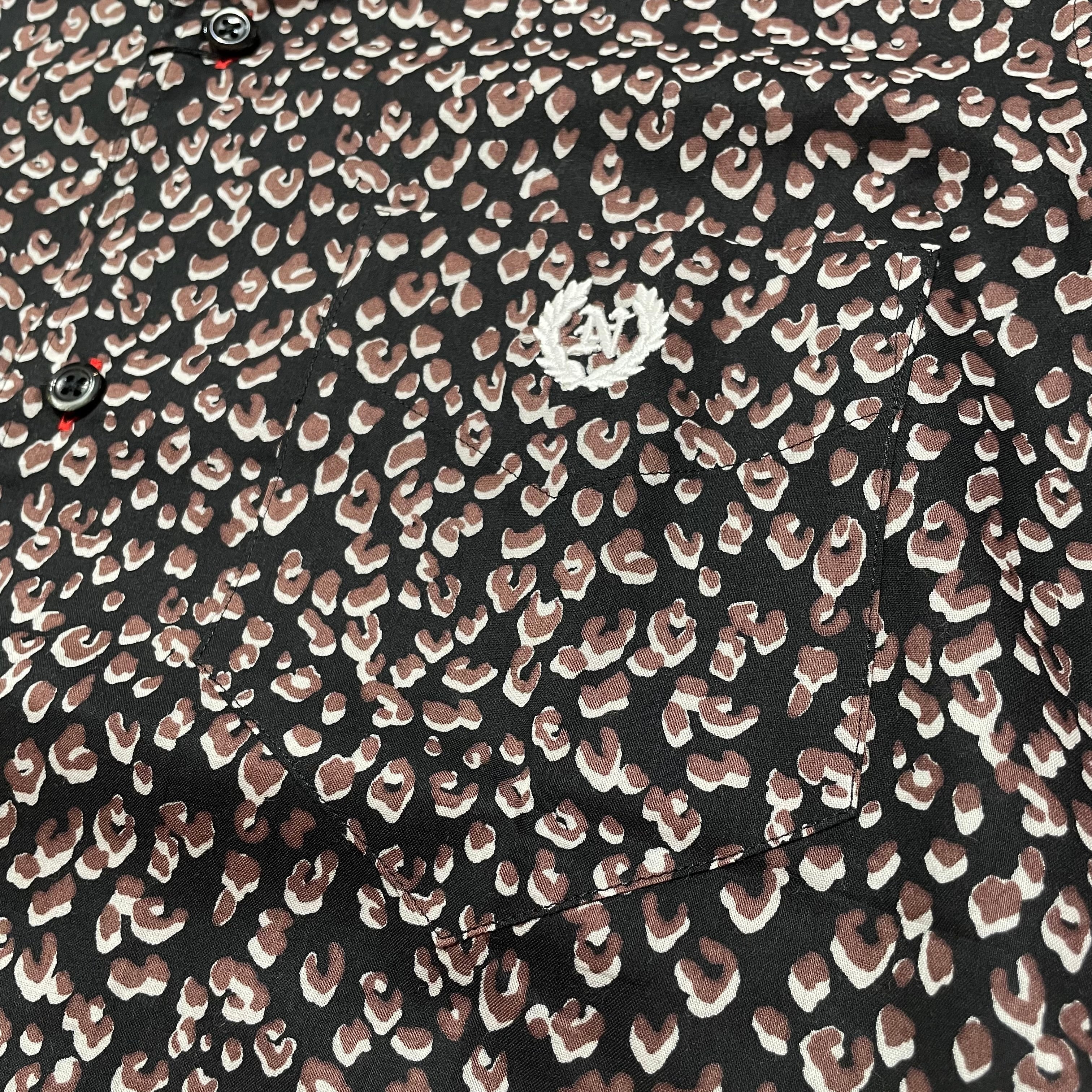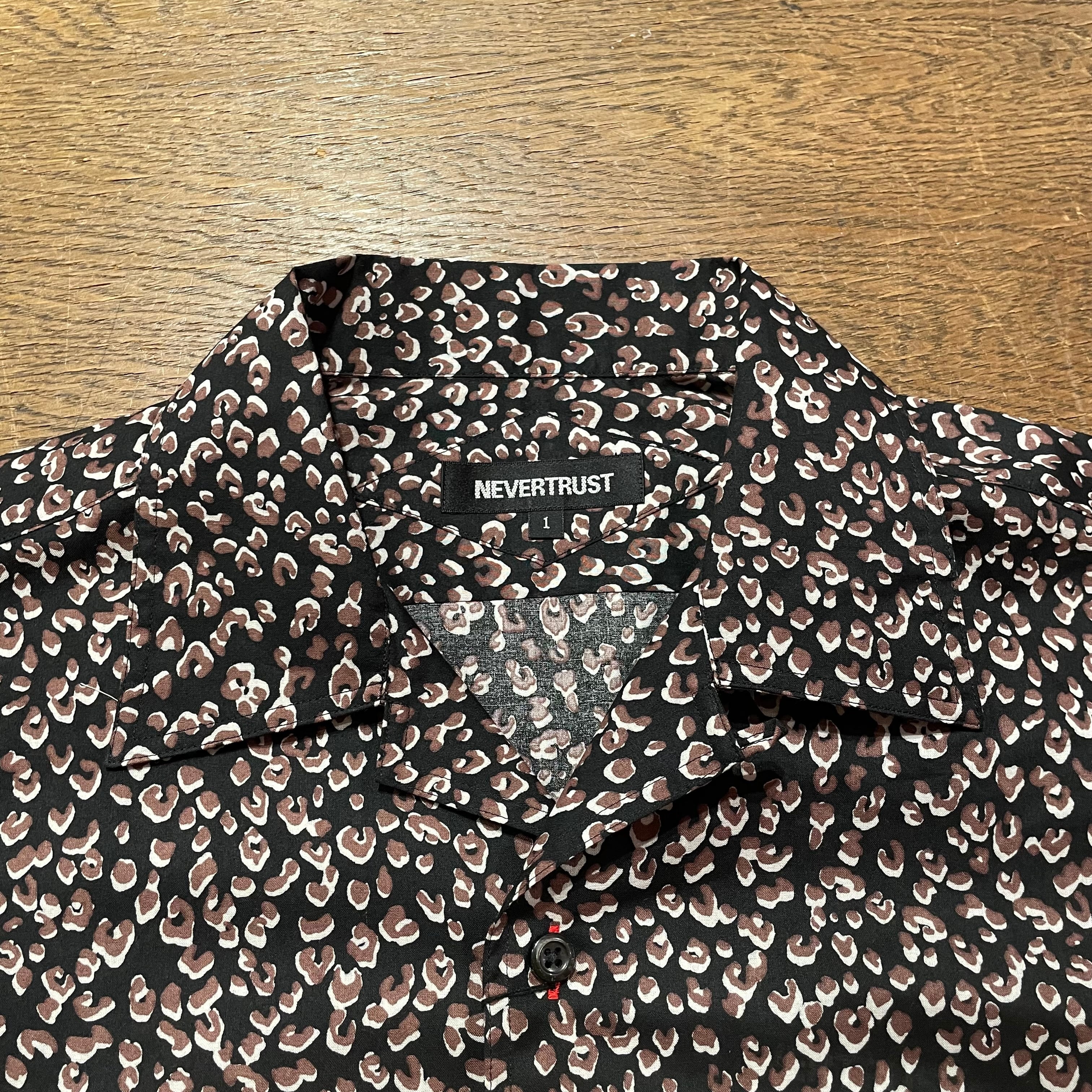 never trust レオパード柄・ワンナップカラーシャツ BLACK