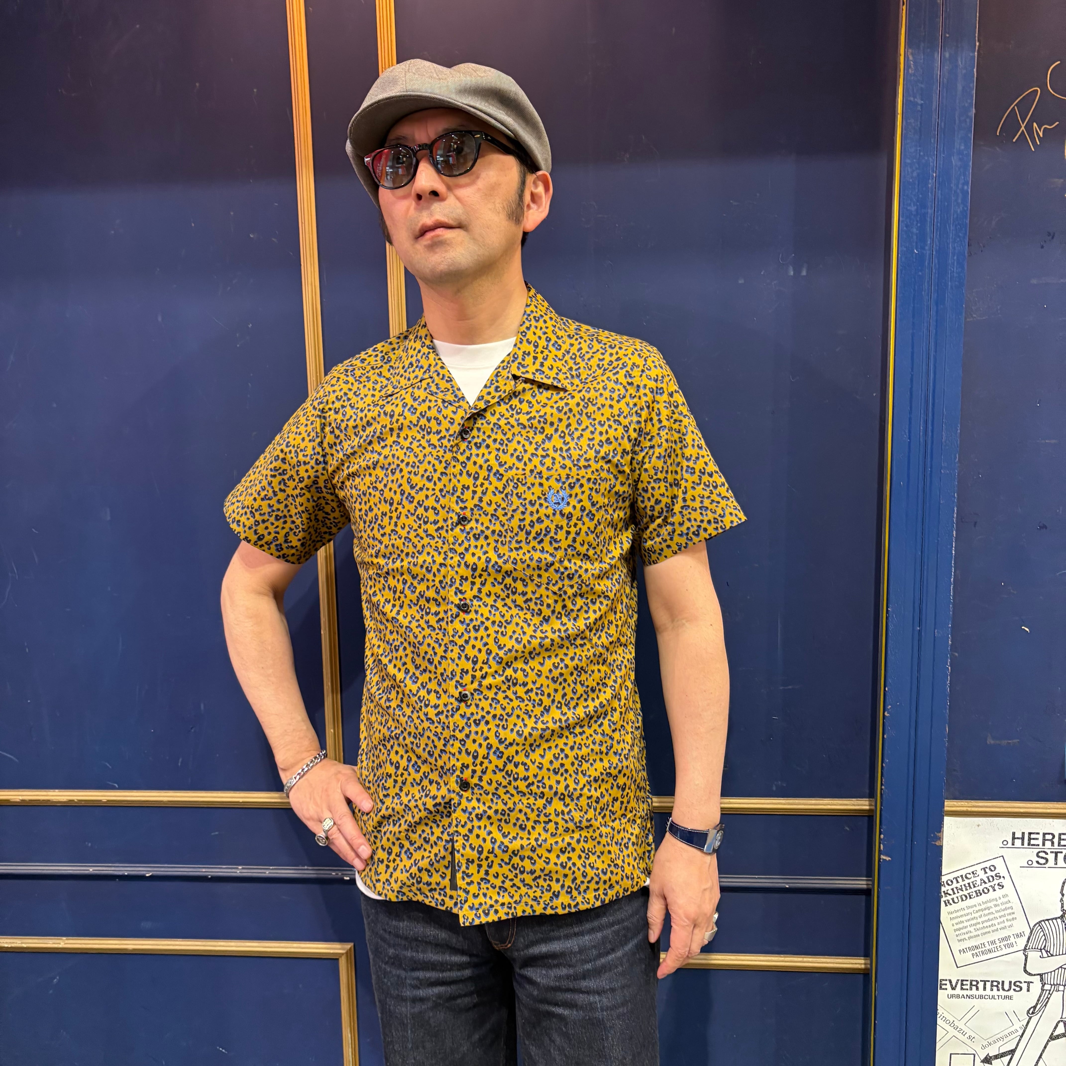暑い夏のアクティブなお出かけにもぴったりな、涼しげにロックな気分に着こなせるレオパード柄のワンナップ(オープン)カラー半袖シャツ。