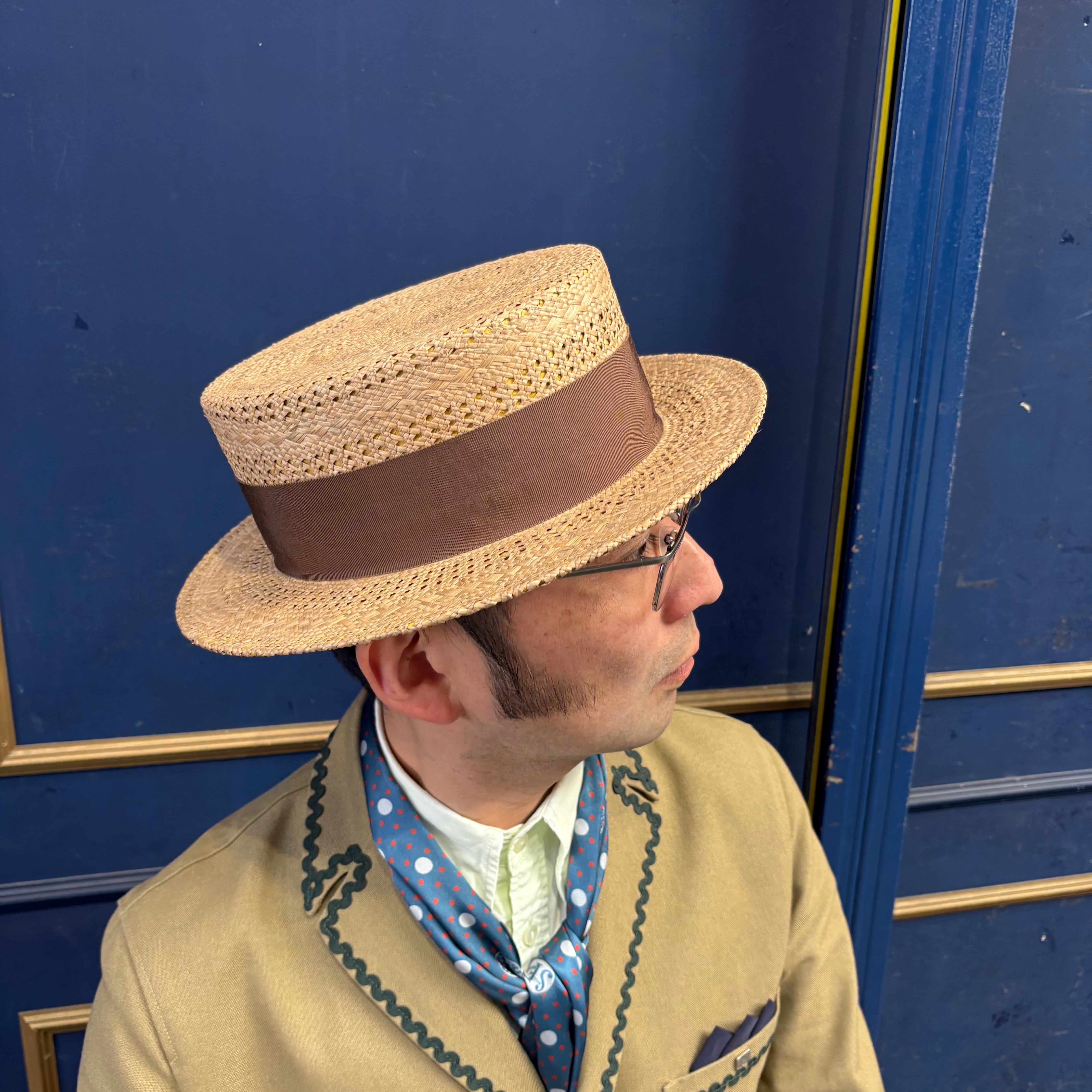 カンカン帽 ベージュリボン