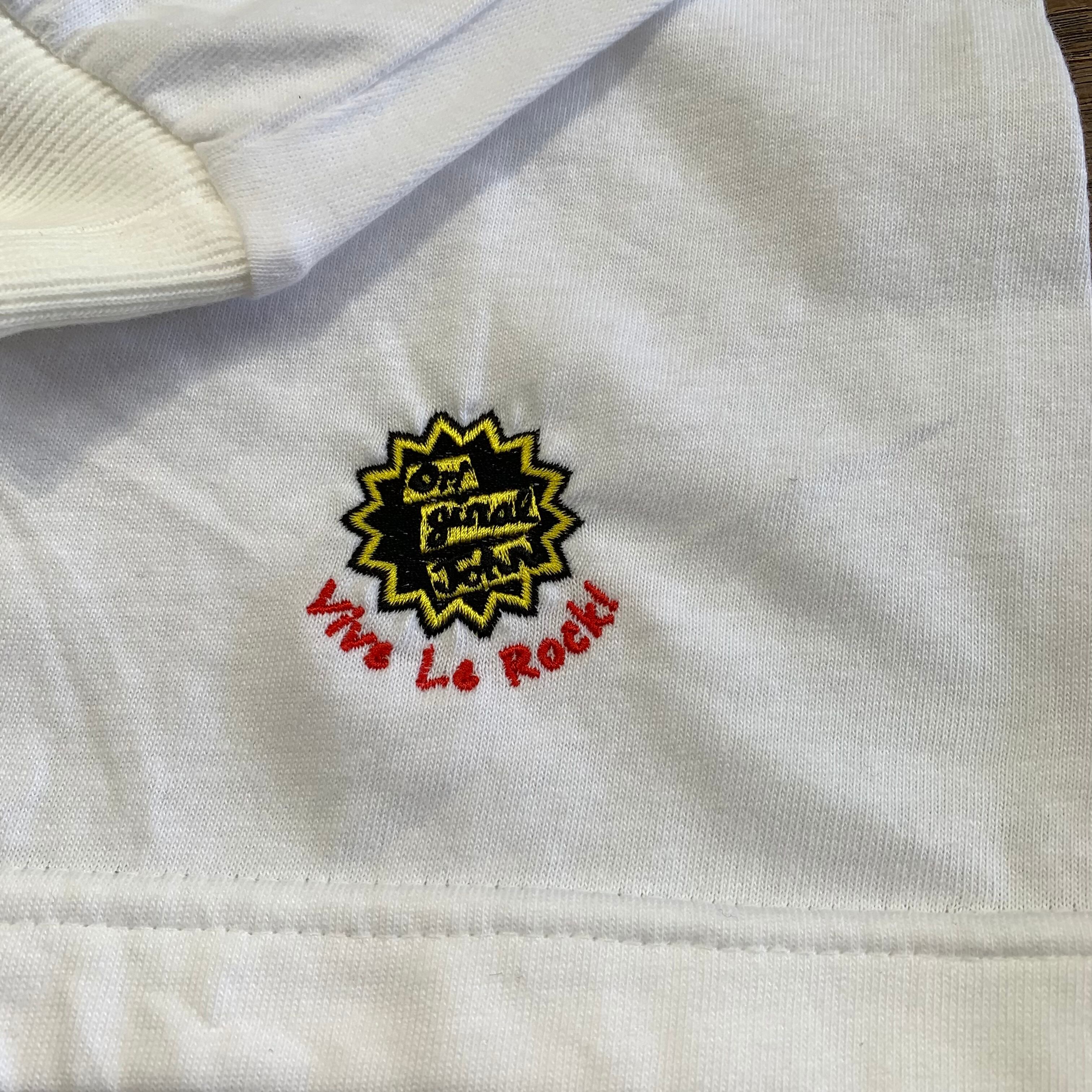 胸に”VIVE LE ROCK!”プリント、裾にワンポイント刺繍。