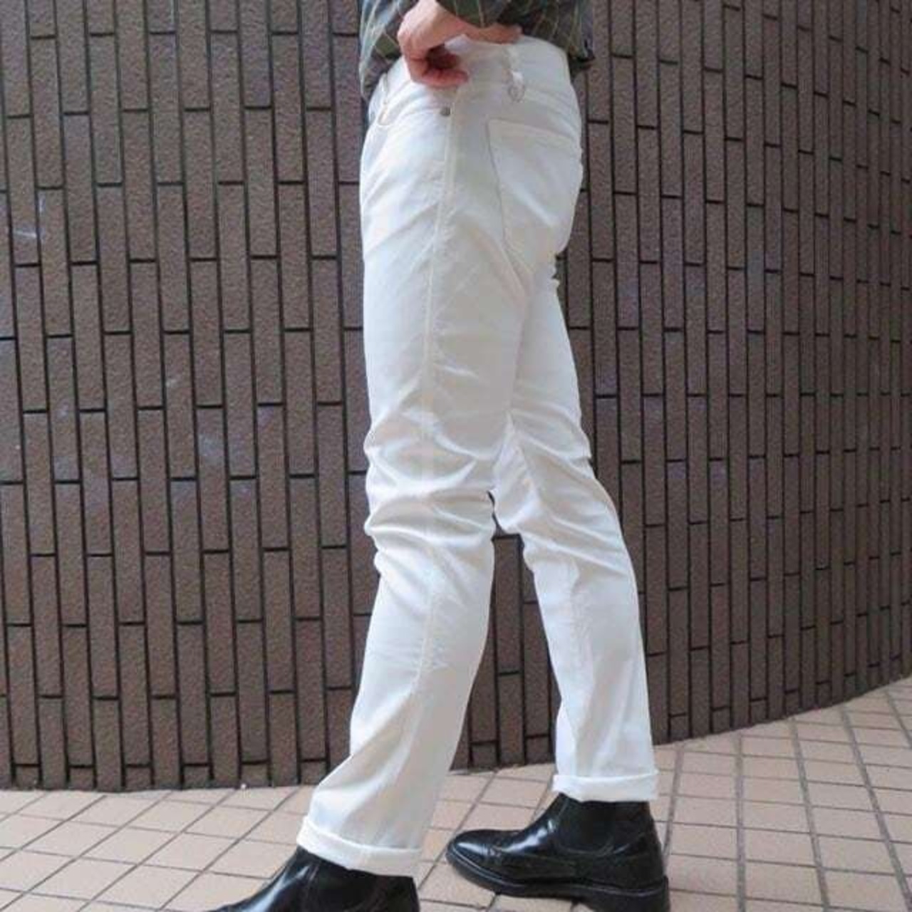 ピケストレッチ・5ポケットパンツ White never trust