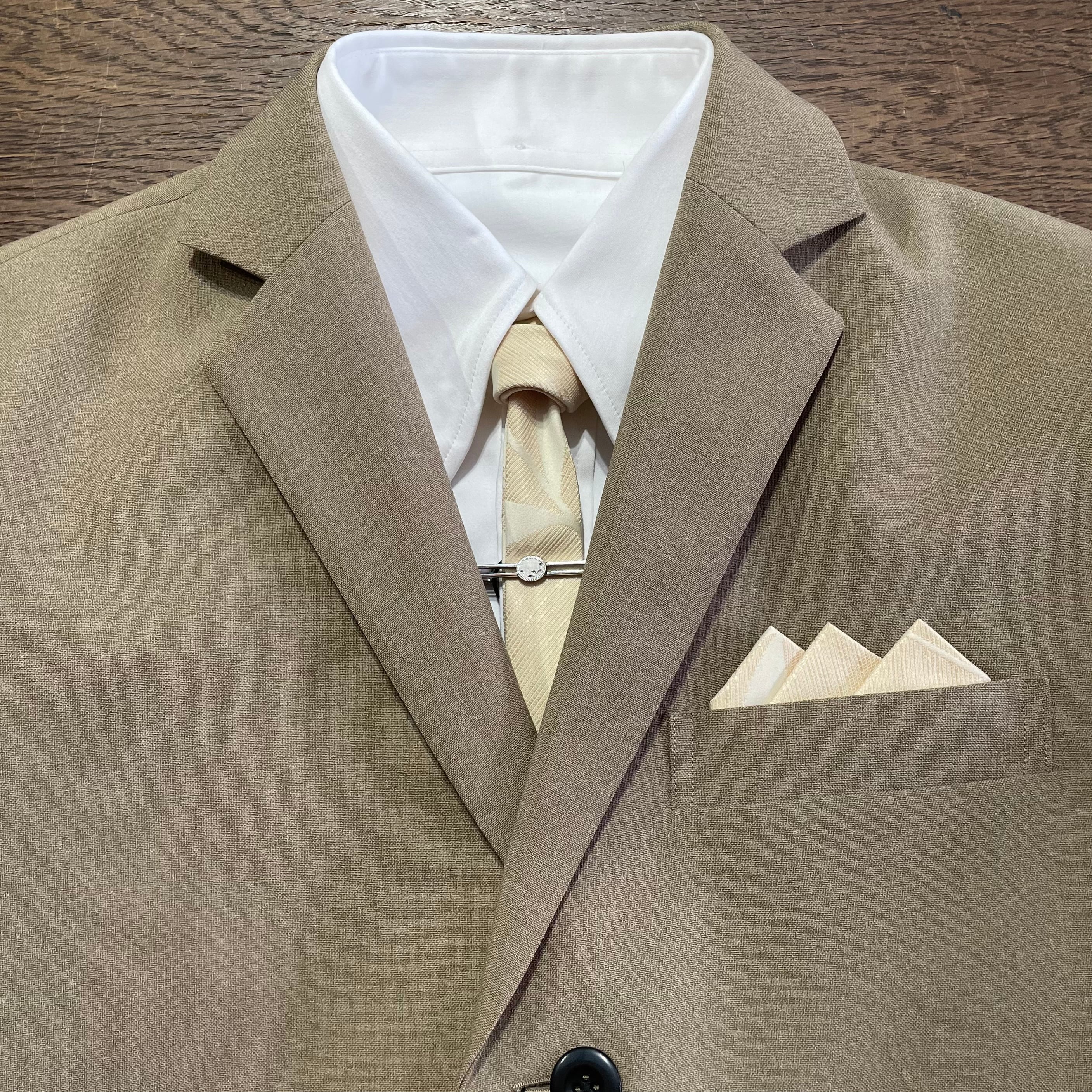 別売りのポケットチーフとの柄合わせを楽しむのもオススメ。