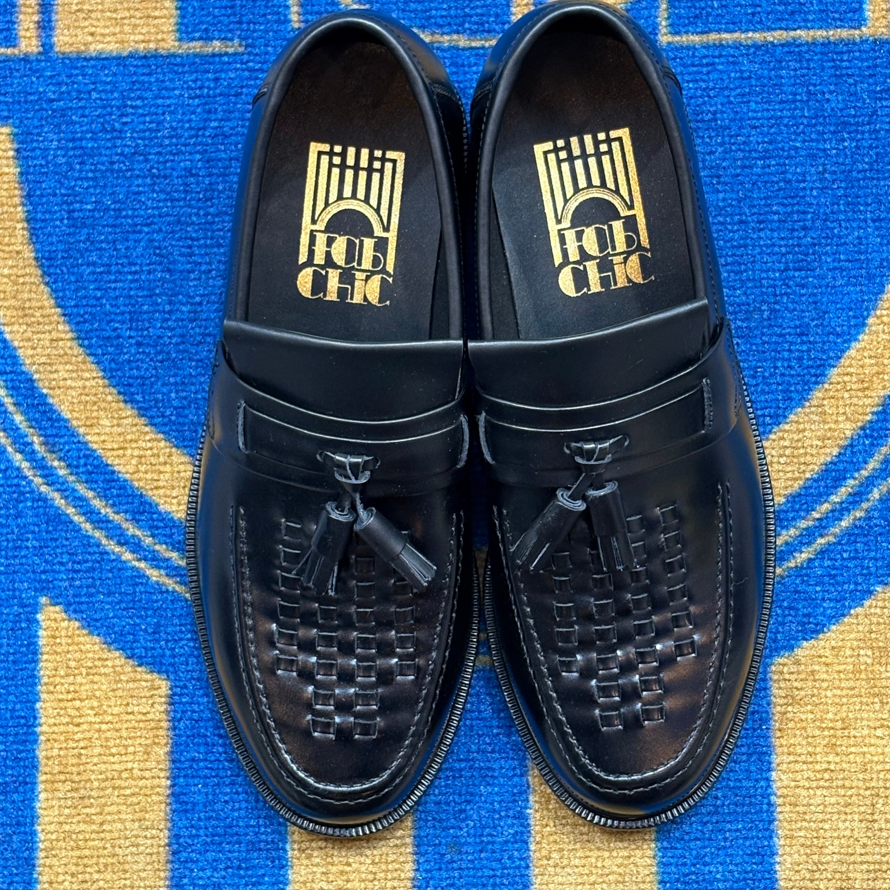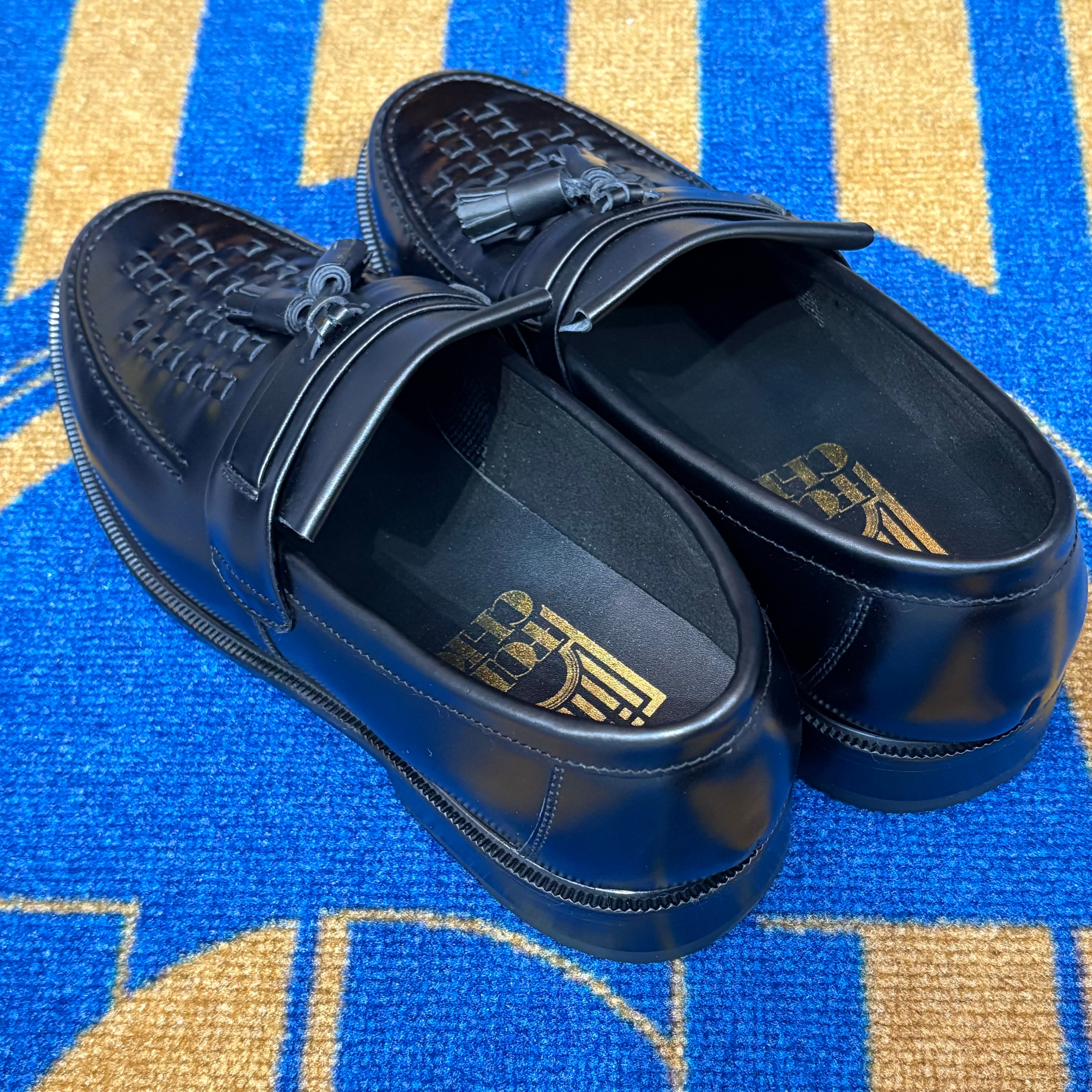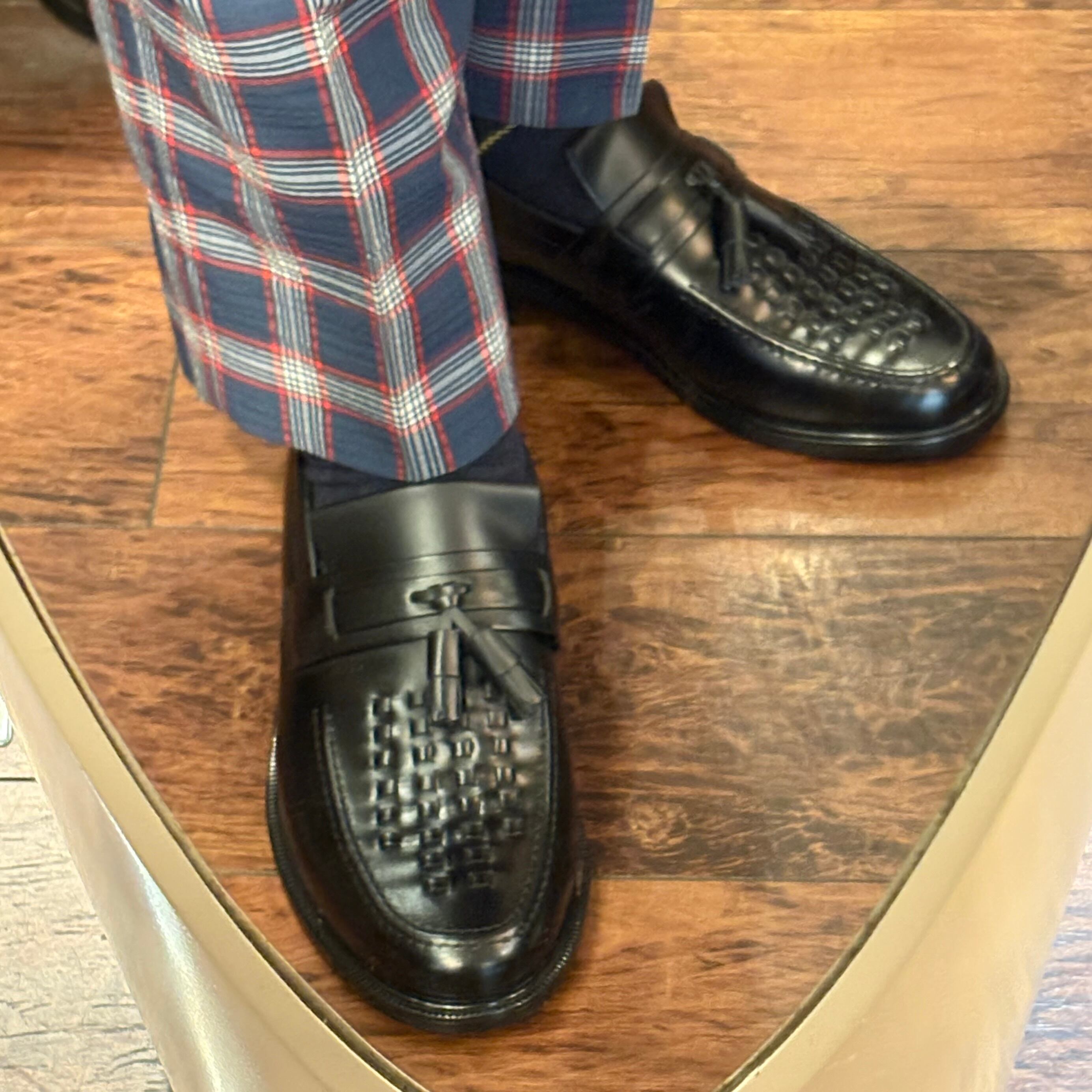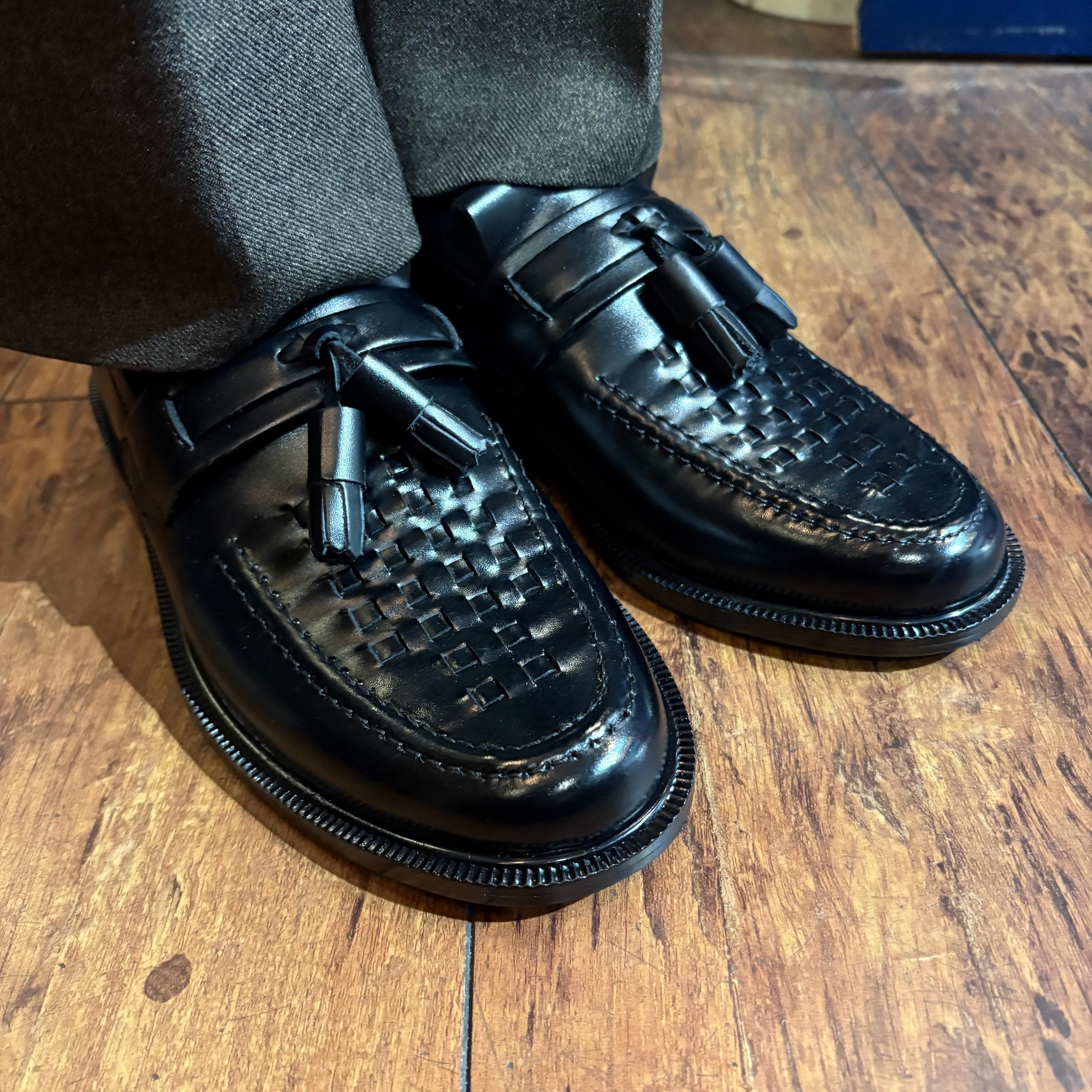 Uチップタッセルローファーに甲がバスケット(編み込み)